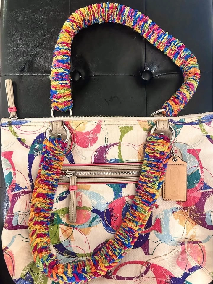 Custom Whimsical Crocheted Handle Vintage Coach Tote