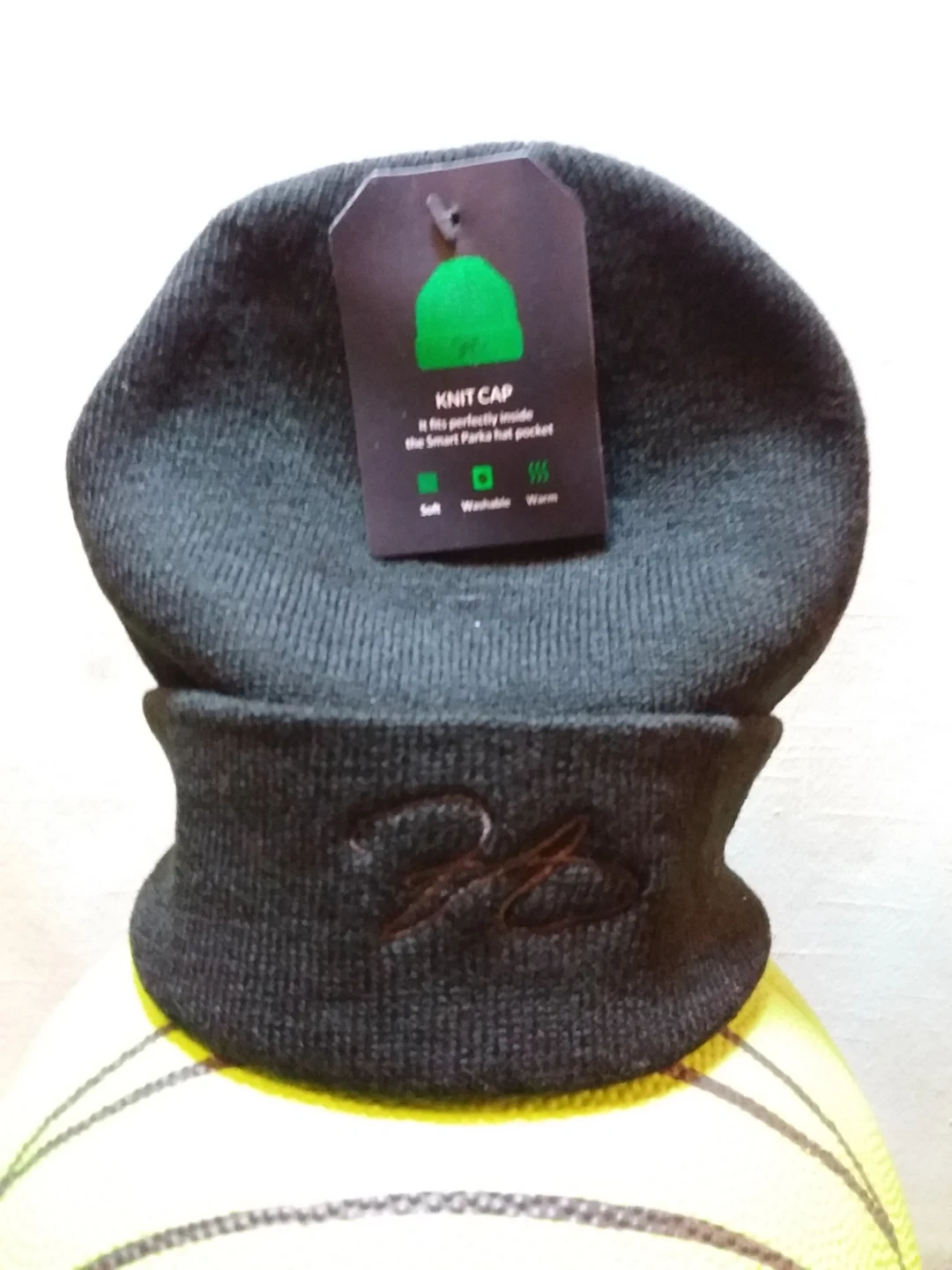 Made of soft, washable material. The cap is Black and has a subtle embroidered logo on the cuff