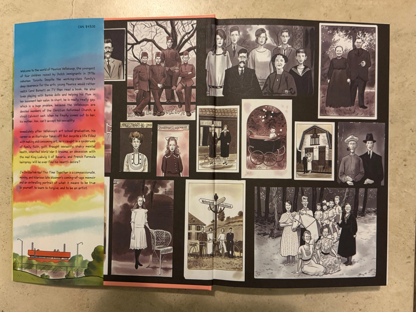 Brand new, never cracked, giftable hard cover. Selling the book 'I'm So Glad We Had This Time Together: A Memoir' by Maurice Vellekoop! It's a graphic memoir that's both heartwarming and thought-provoking, exploring themes of family, identity, and art. A great read for anyone interested in memoirs or Canadian cartooning!