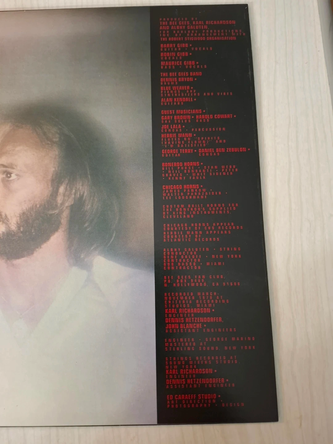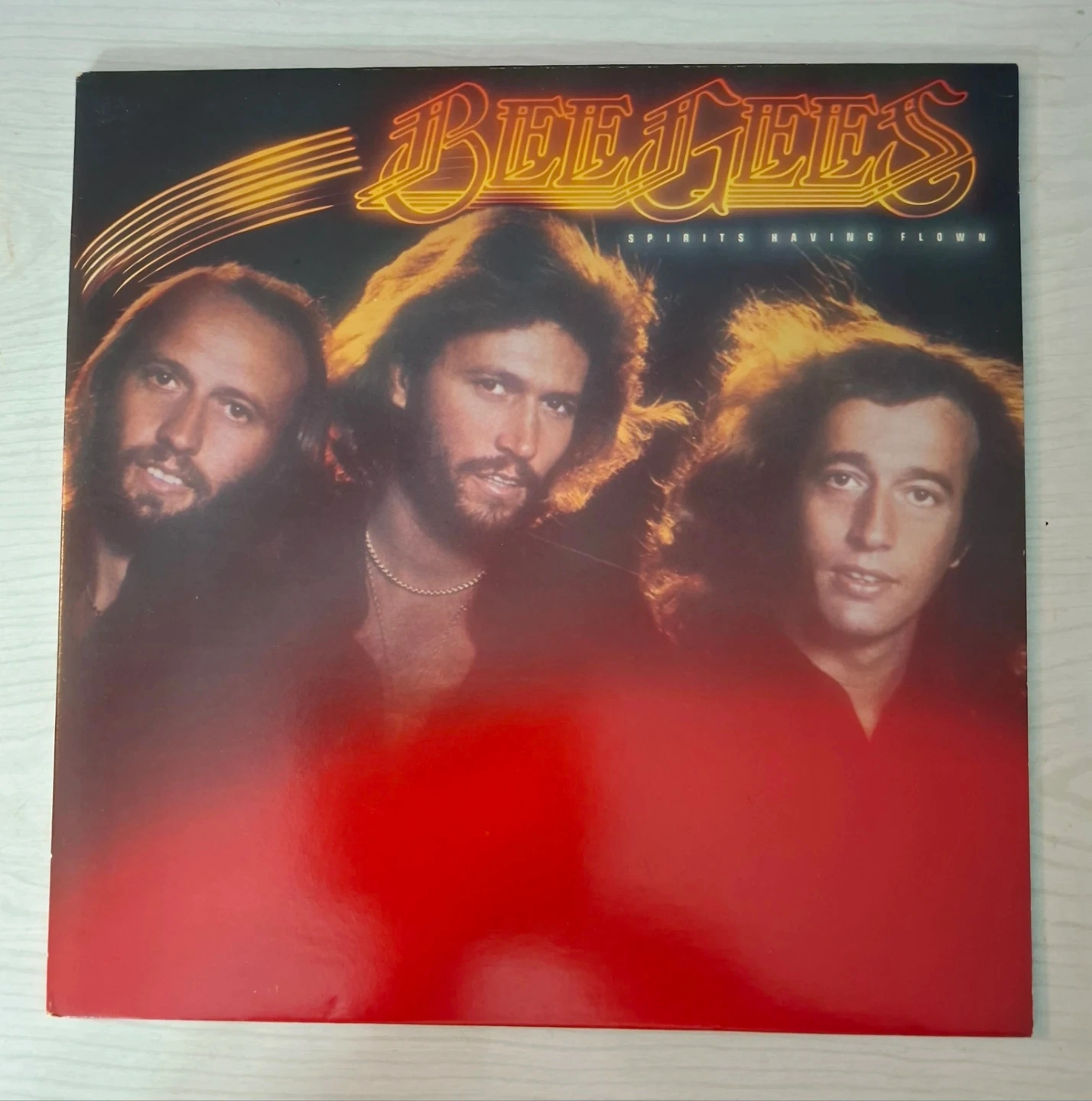This is the Bee Gees 'Spirits Having Flown' vinyl record. It features the original album art and tracklist. The record is in excellent condition and ready for playback.