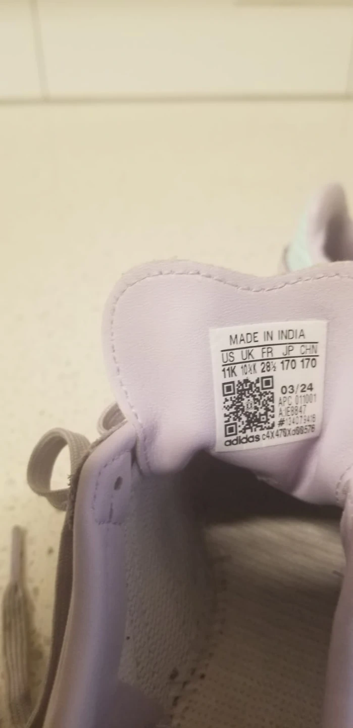 Kids' Adidas Samba sneakers in a light lavender color. These shoes feature a classic design with suede toe caps and rubber soles. Size is 11K, which is equivalent to a US 11K, UK 10.5K, and EU 28.5. Perfect for everyday wear for little ones!