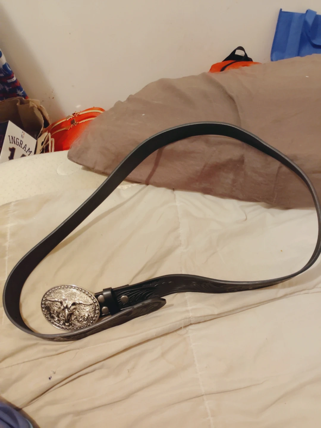 Western Style Belt with Silver Bull Head Buckle