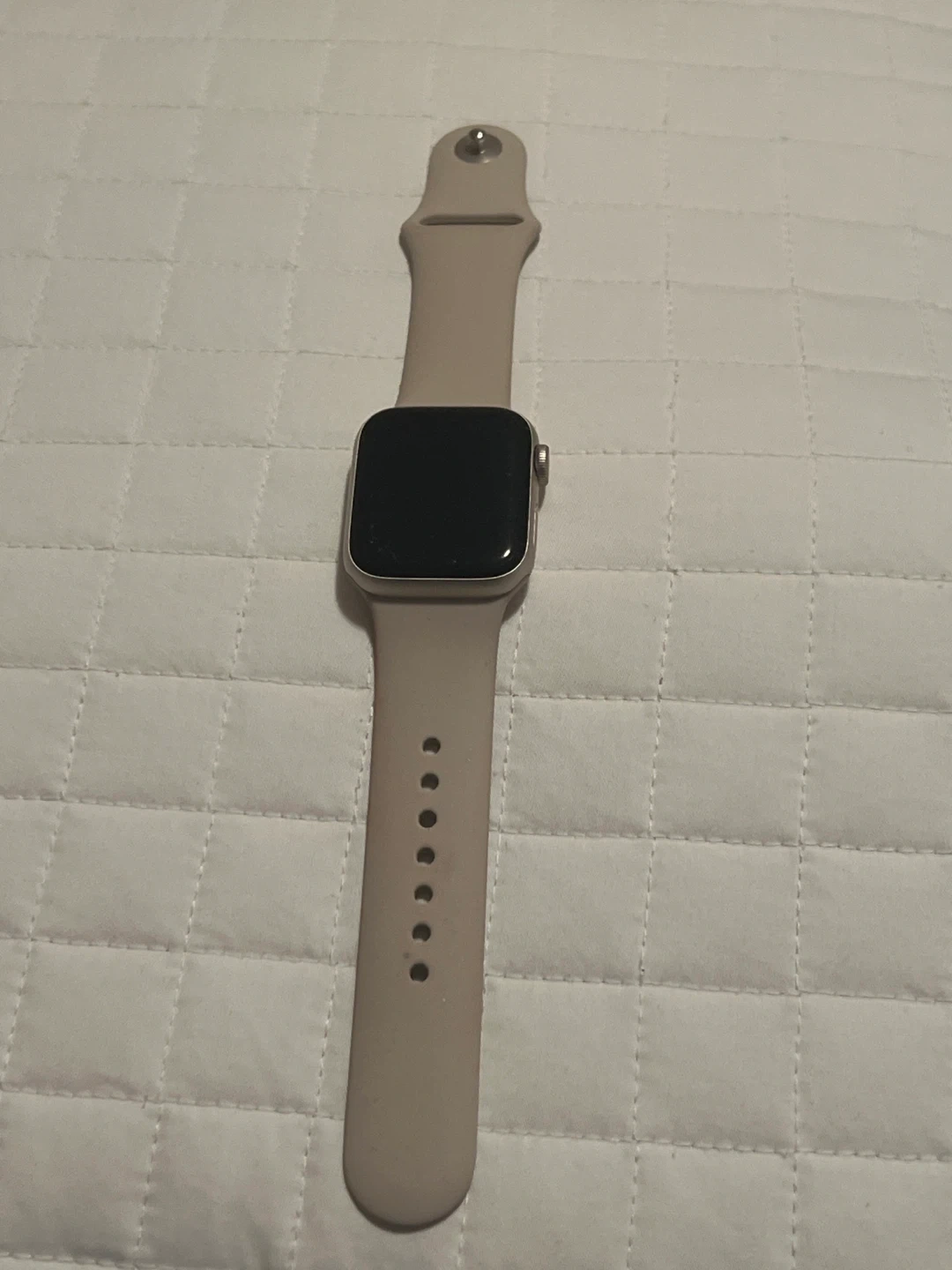 It's an Apple Watch Series 7 with GPS. It's a great smartwatch for staying connected and tracking fitness. Comes with a light pink sport band.