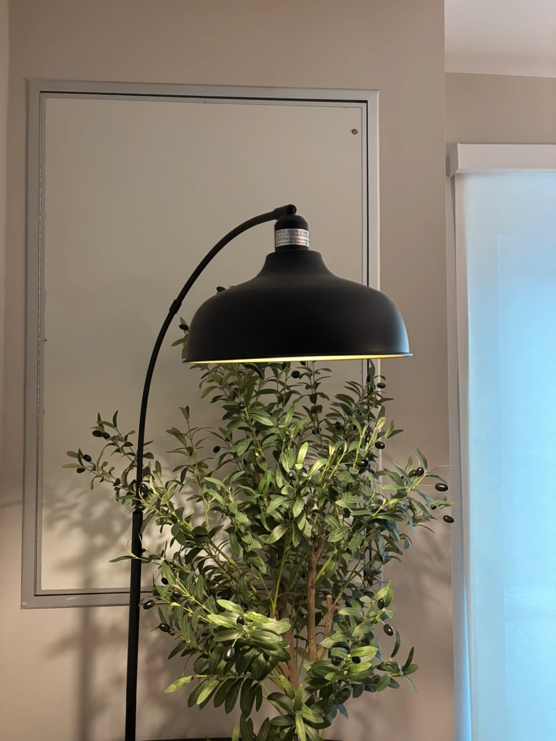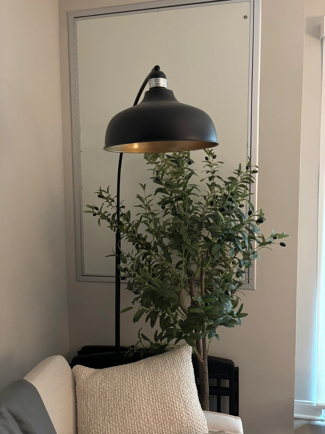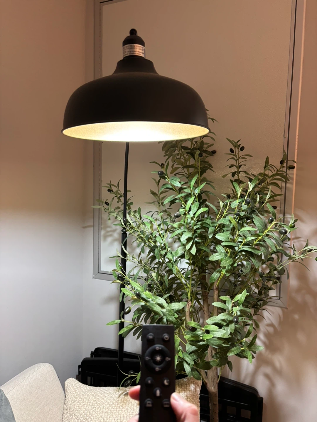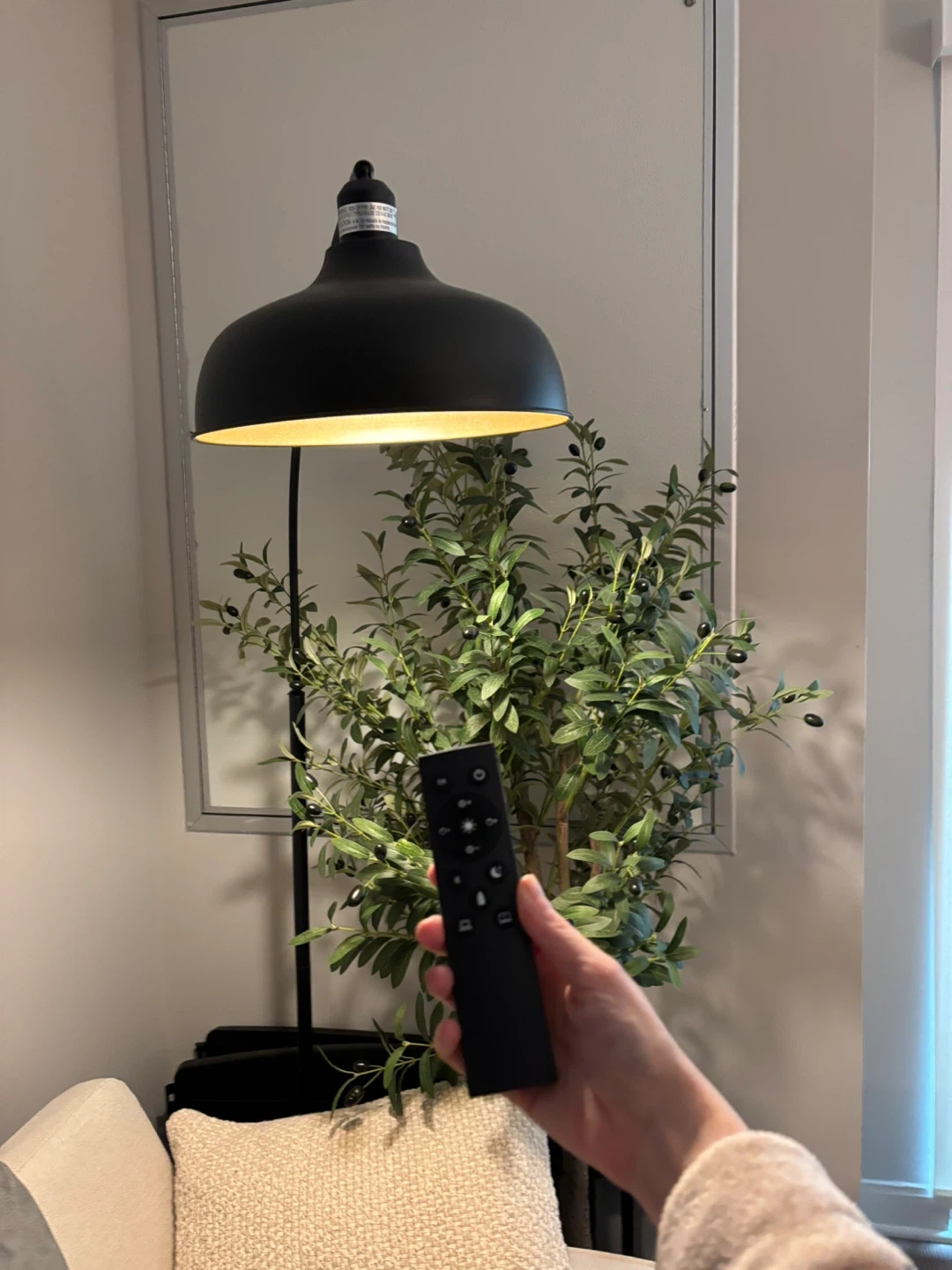This black metal arc floor lamp offers adjustable brightness and color temperature control via its included remote. The dome-shaped shade directs light downwards. It's great for providing targeted lighting in a living room or reading nook.