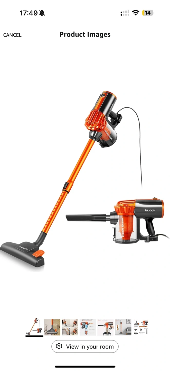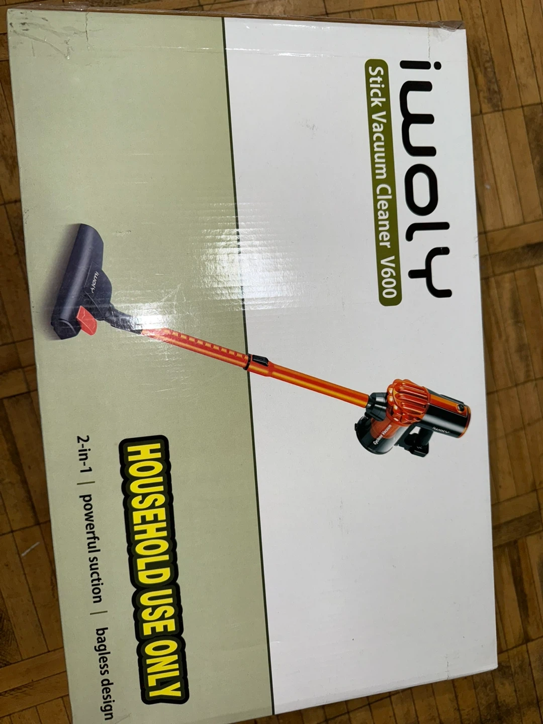 This is an iWoly V600 stick vacuum cleaner. It's a 2-in-1 model with powerful suction and a bagless design. This vacuum is for household use only.