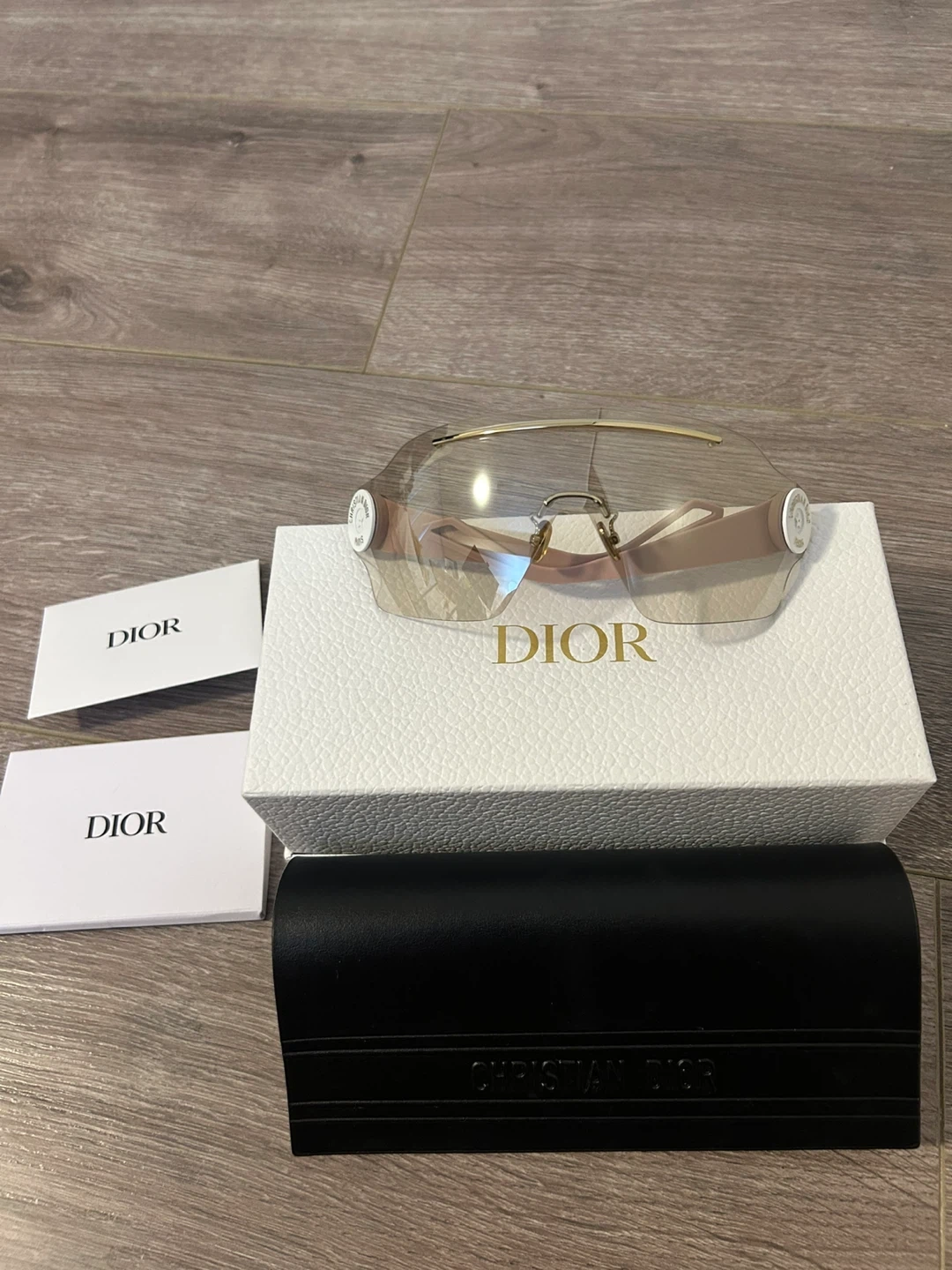 Description : Logo sunglasses Rose gold metal details tinted lenses Adjustable metal nose pad
