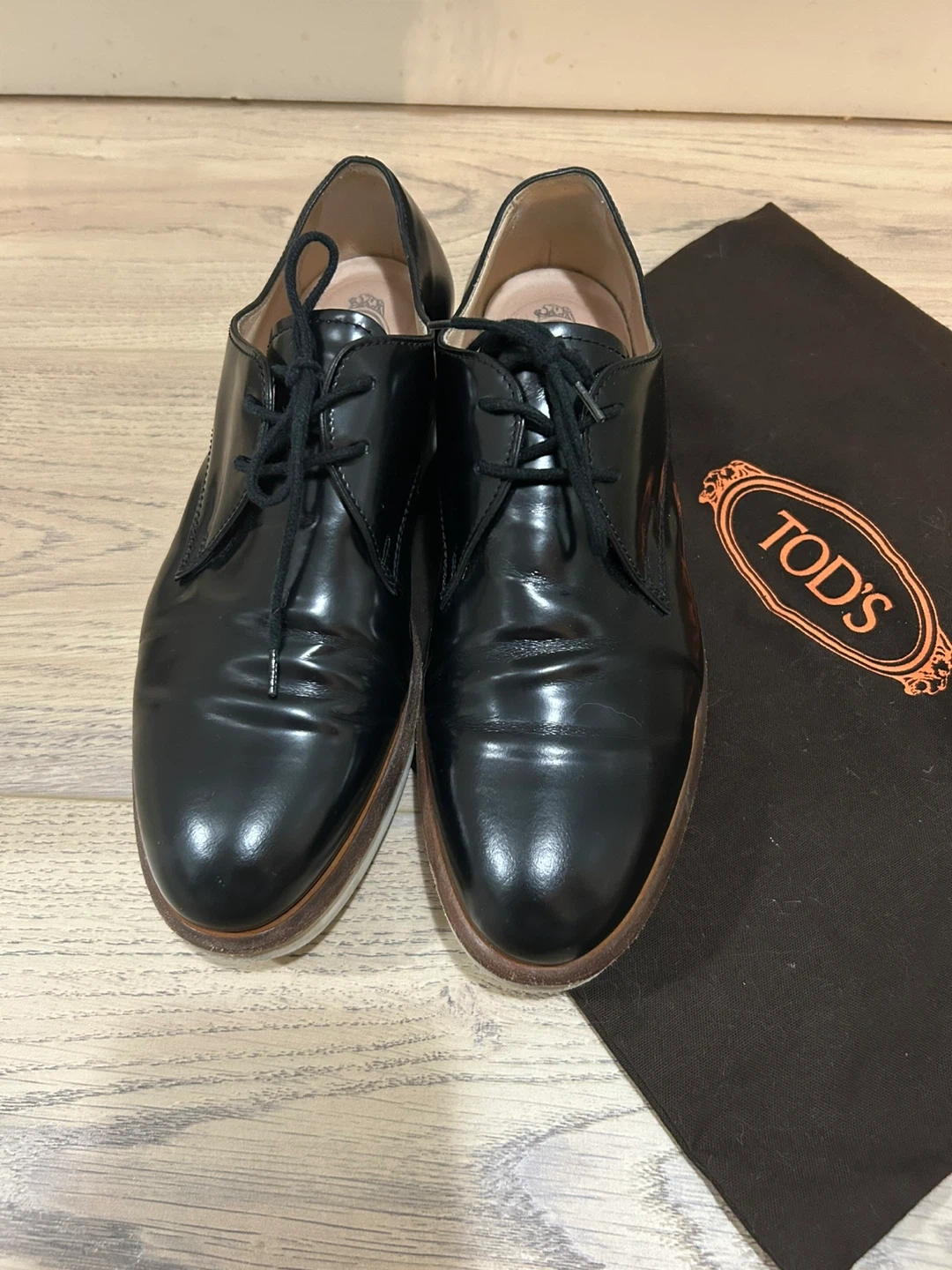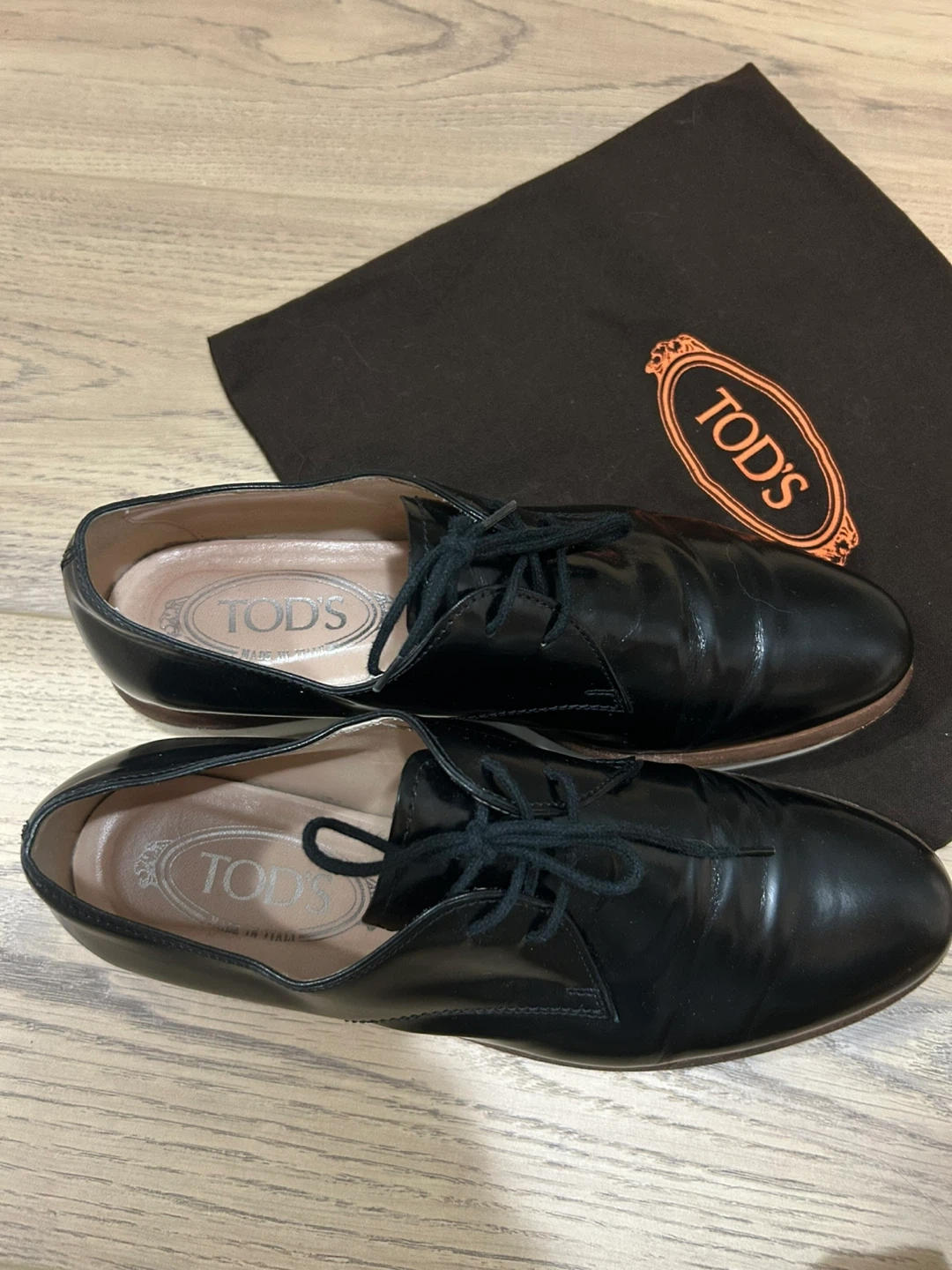 TOD'S black leather oxford shoes for women. Made in Italy. Includes original TOD'S dust bag. Size 6 1/2.
