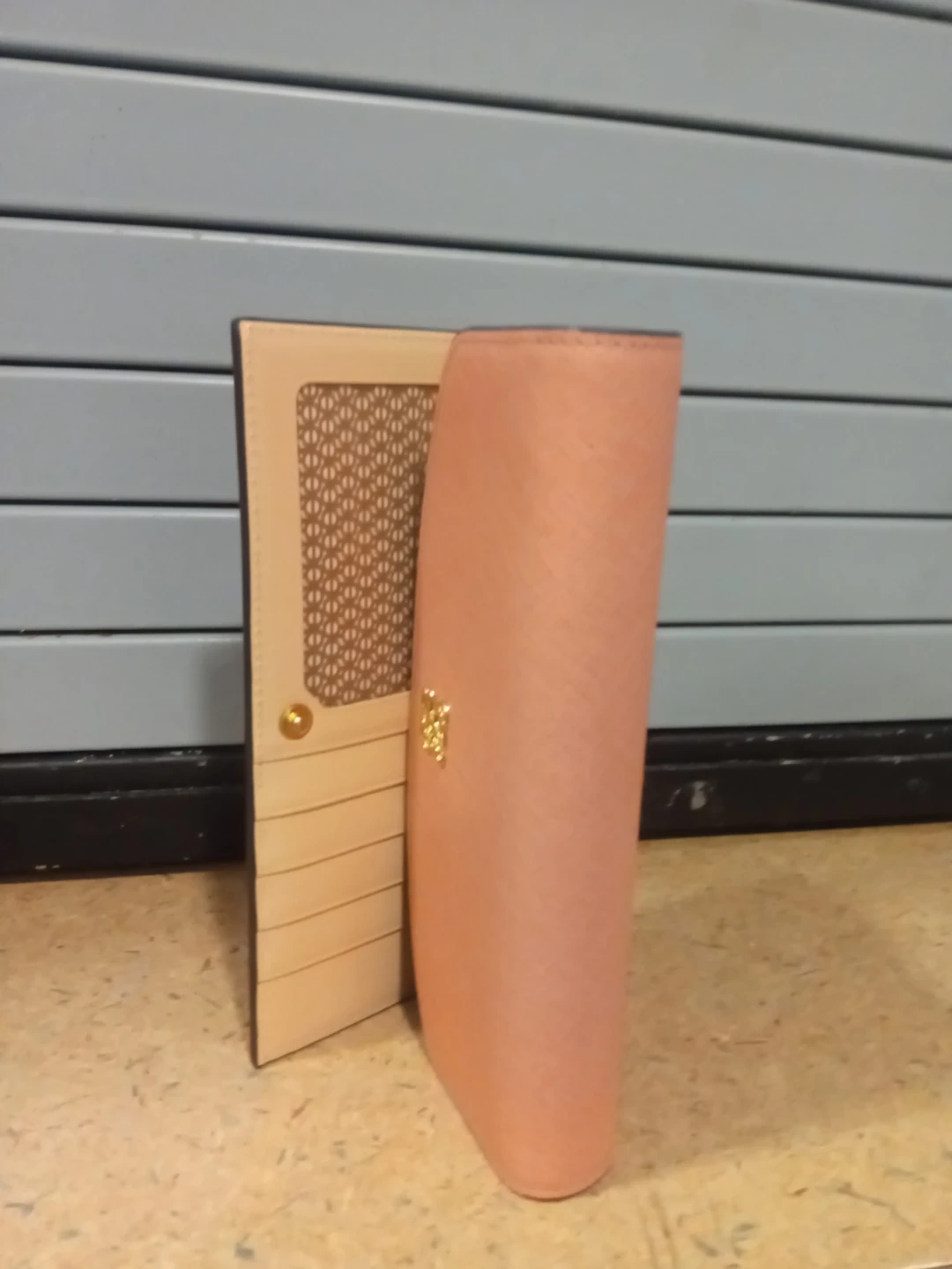 Louis QuatorzePink flap wallet in a nice pink colour. It's made of leather and has a gold logo. Plenty of room for your cards and cash!
