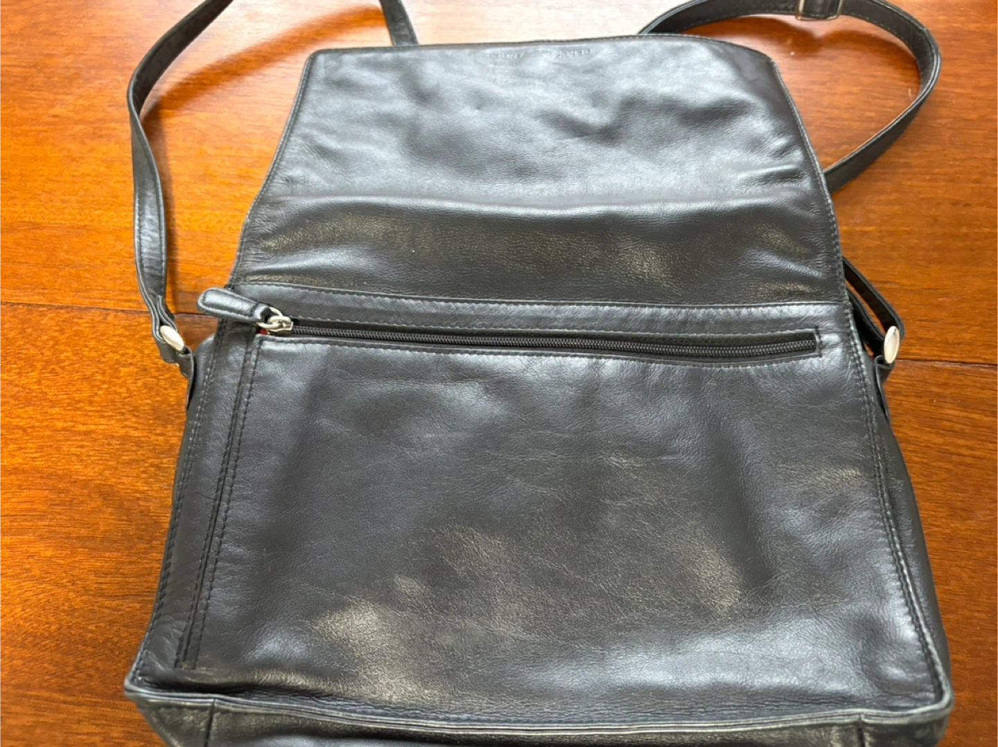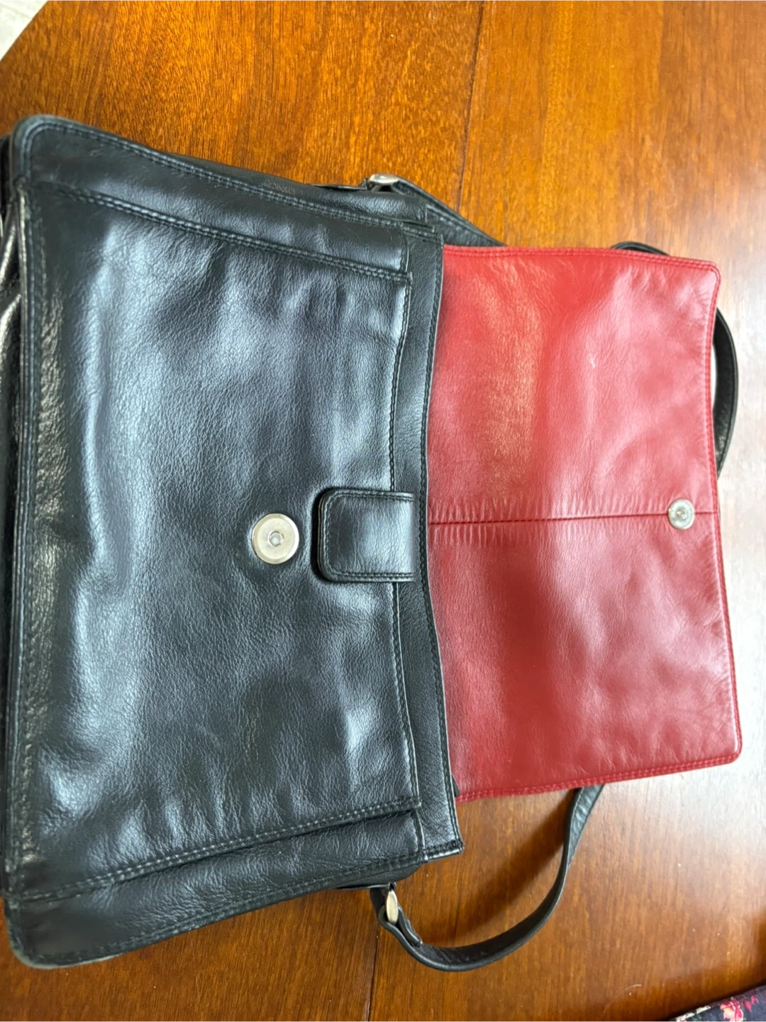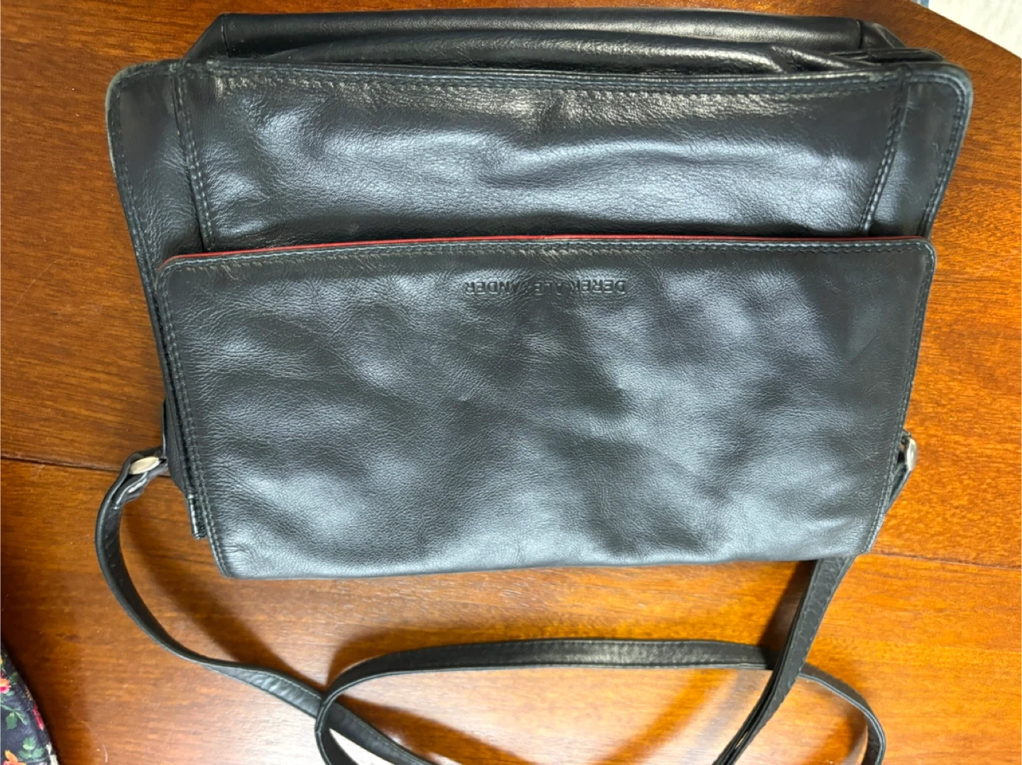 This Derek Alexander purse is made of genuine black and red leather. It features multiple card slots, this purse sells for 200.00