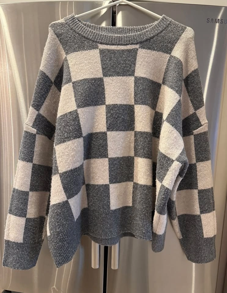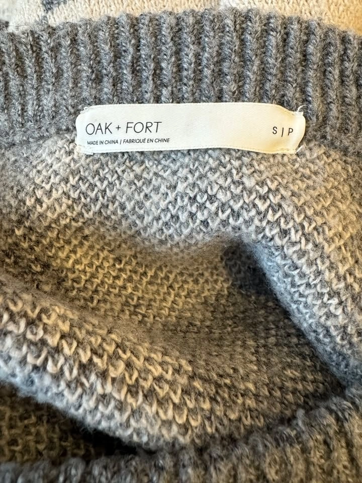 OAK + FORT Crewneck checkered Sweater - Charcoal Oatmeal size Sm