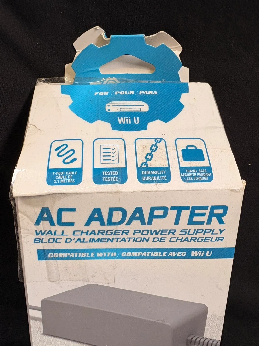 This Tomee AC adapter is a wall charger power supply designed for the Nintendo Wii U. It features a 7-foot cable and fits into standard North American outlets. The adapter is tested for durability.