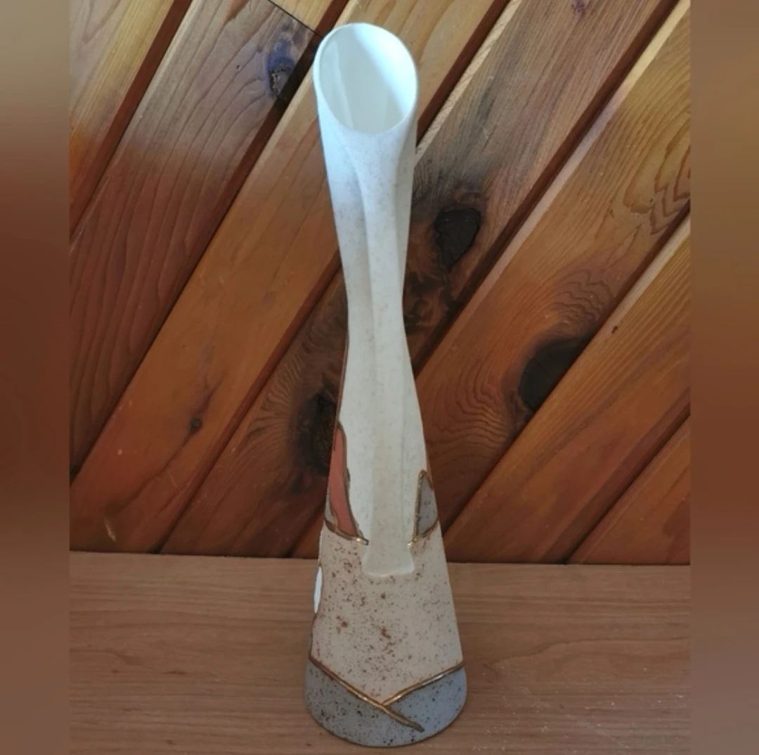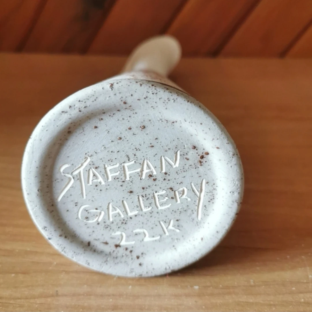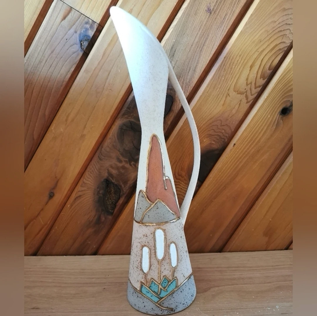 Gorgeous Vintage Tall Native American Southwestern Inspired 22k Studio Pottery Pitcher Vase. Made with 22k Gold Accents, Staffan Gallery. Rare Find.