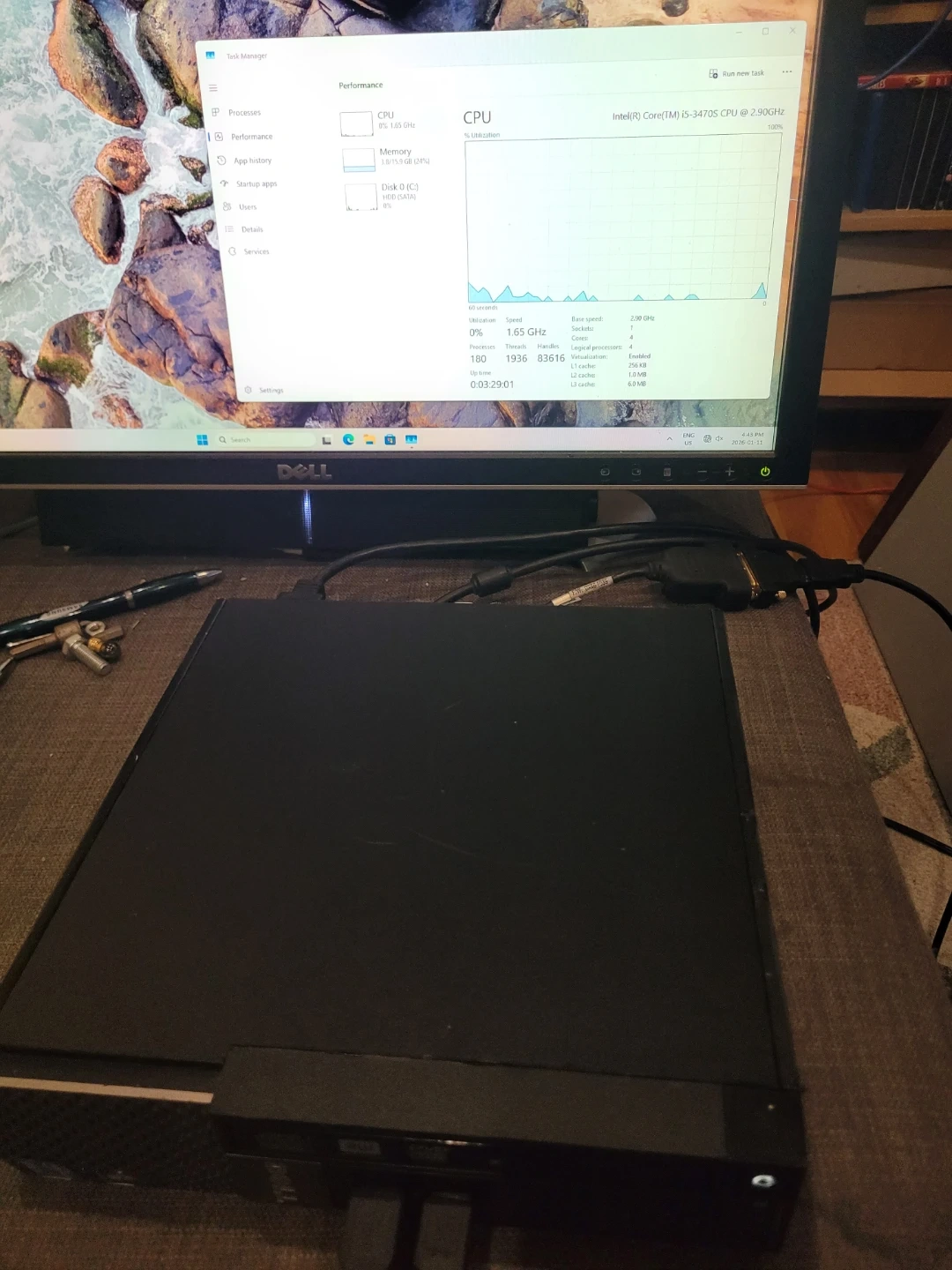 Selling a Dell OptiPlex 7010 ultra small form factor desktop computer. Fresh install of Legit windows 11 ! Perfect for basic computing tasks runing a Intel Core i5-3470S @ 2.90GHz w 16gb ram and 500gb hdd. Dell 24" monitor w matching soundbar speakers optional w purchase. Comes w Keyboard Mouse and cords as required (See CPU benchmark here to compare: https://www.cpubenchmark.net/cpu.php?cpu=Intel+Core+i5-3470S+%40+2.90GHz&id=823 )