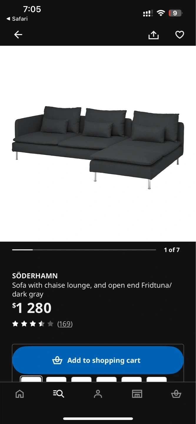 This is an IKEA SÖDERHAMN sofa with a chaise lounge and open end in dark grey. It's a modular sofa with removable covers. This sofa has a chaise lounge on the left side.