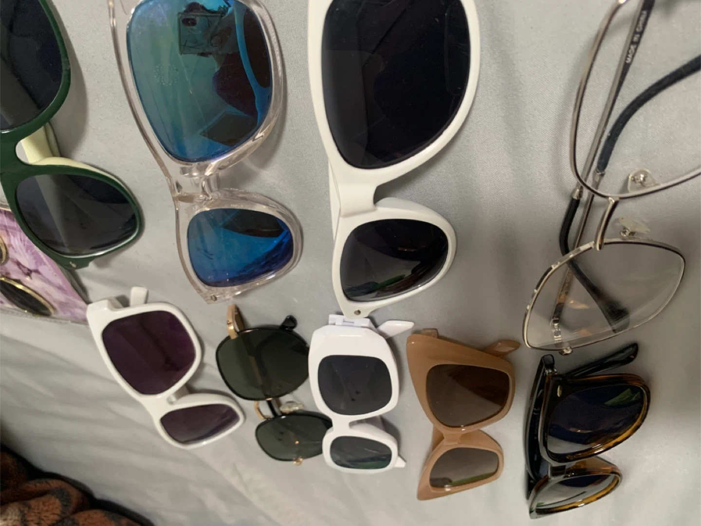 A collection of assorted sunglasses and eyeglasses. Includes various styles and colours for different looks. Some come with cases or packaging. Great for protecting your eyes from the sun or for fashion. Find your perfect pair!