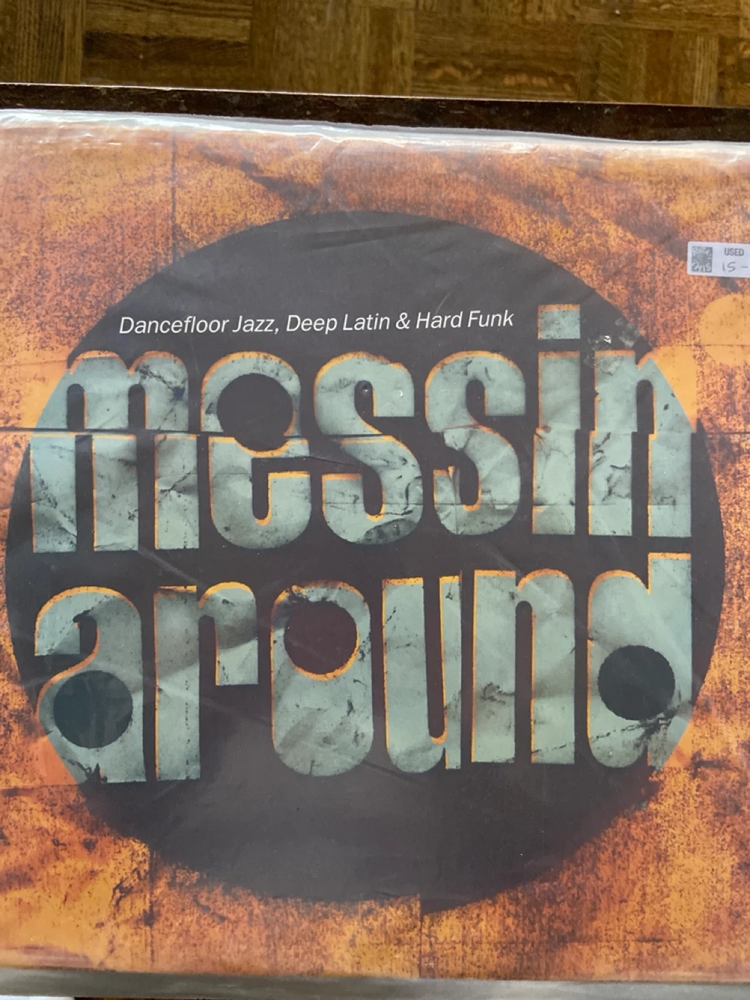 Universal Jazz presents 'Messin' Around', a compilation featuring Dancefloor Jazz, Deep Latin & Hard Funk. This vinyl record includes LPs with tracks from Tito Puente, Tom Jones, Bobby Byrd, and Jimmy Smith. Side A includes 'To Be In Love' and 'Latin Slide edit', while Side B features 'Hard to Handle live' and 'The Chair Dance'.