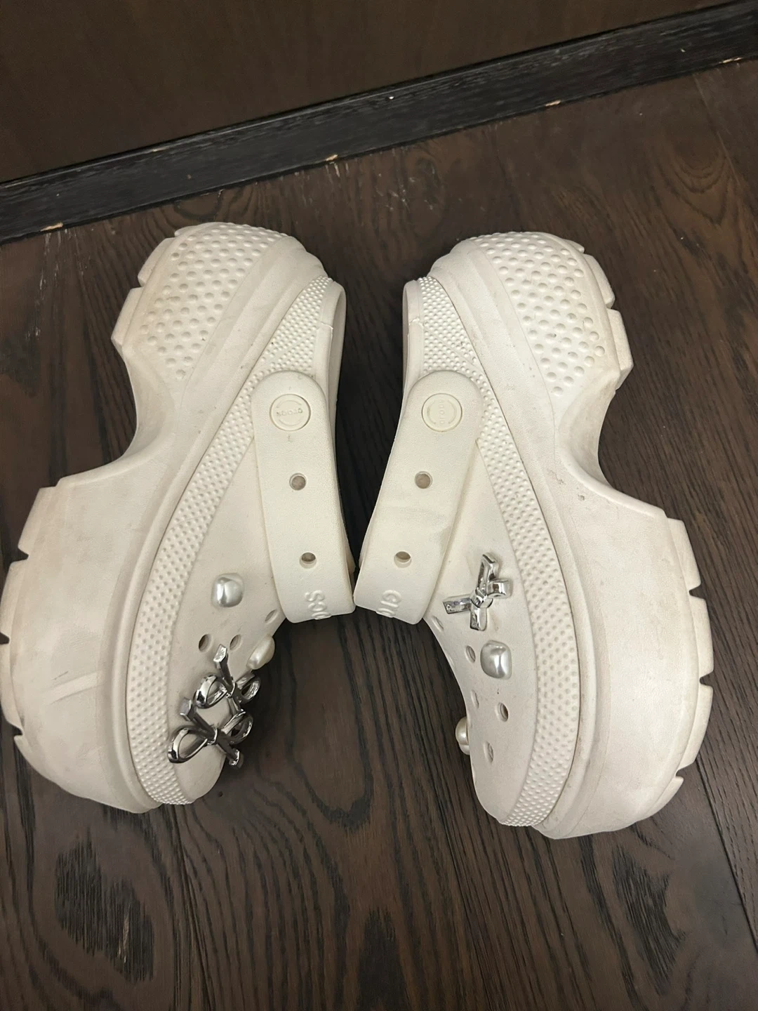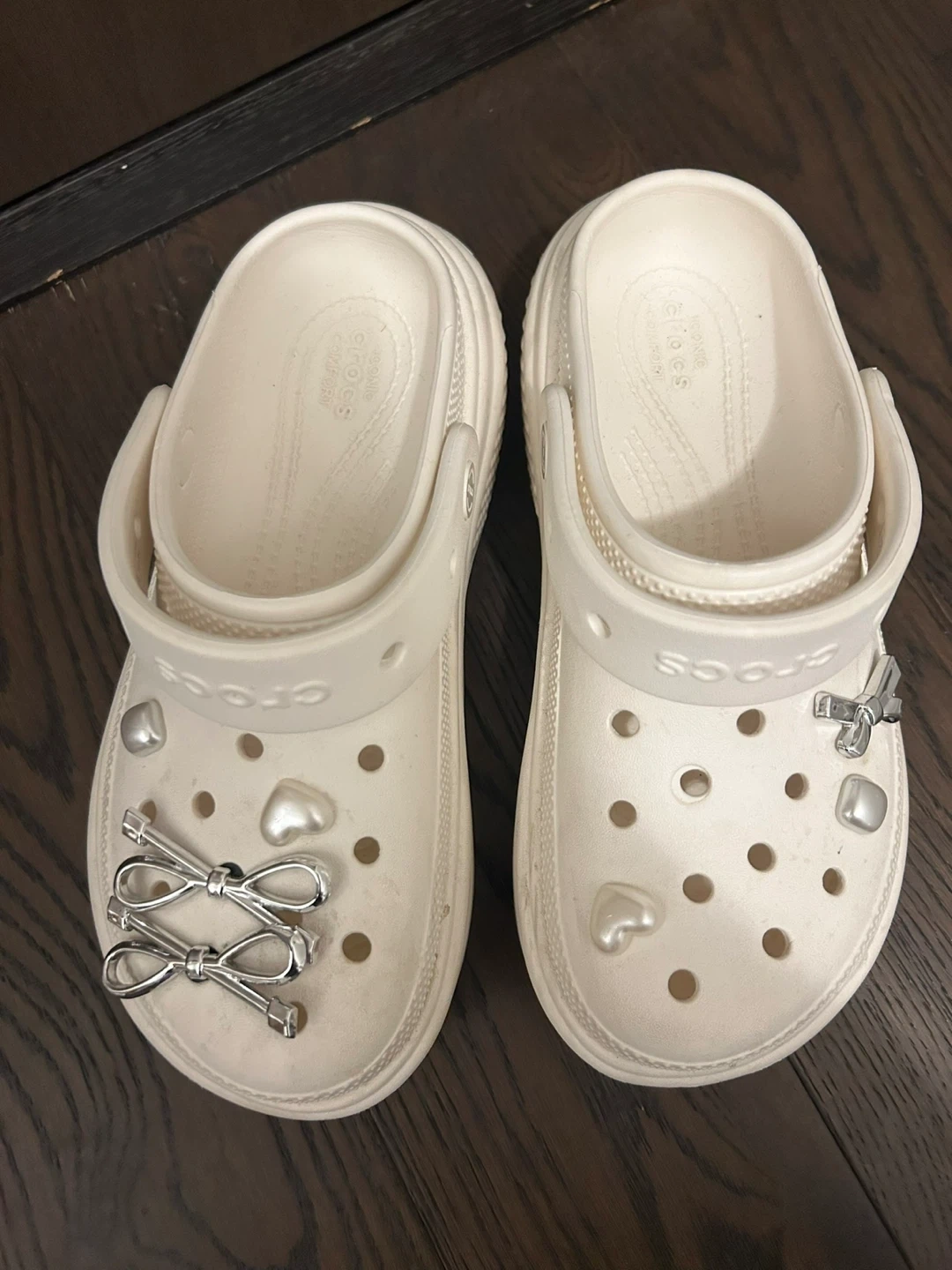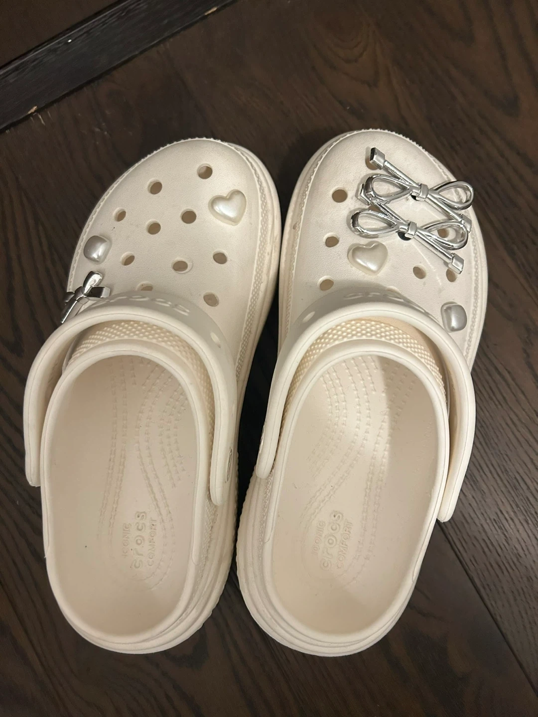 Selling a pair of Crocs platform clogs in a size 7. They have some cute charms on them!