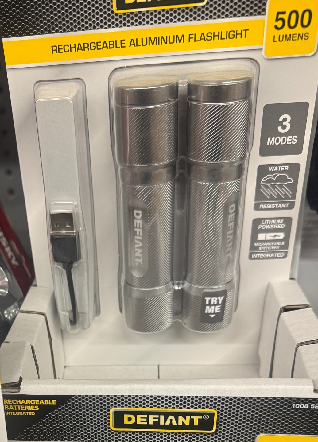 Defiant Rechargeable Aluminum Flashlights (2-Pack), 500 Lumens