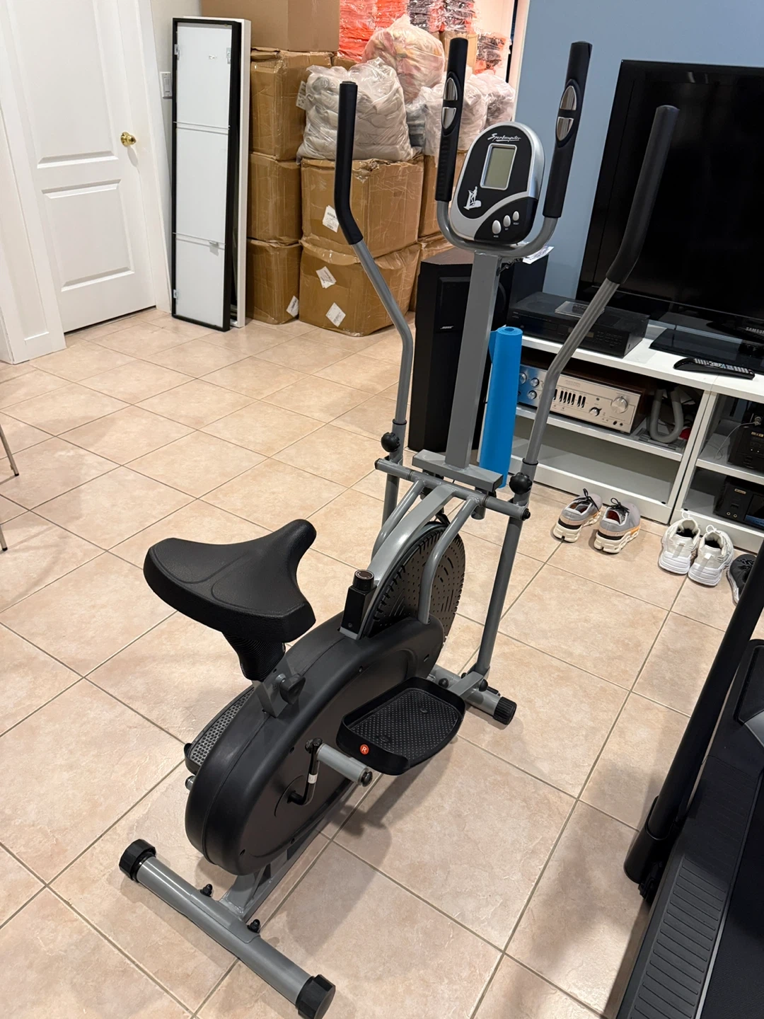 This elliptical bike from Sportcomputer offers a versatile workout with its combination of elliptical motion and a seated bike option. It features an electronic display to track your progress.