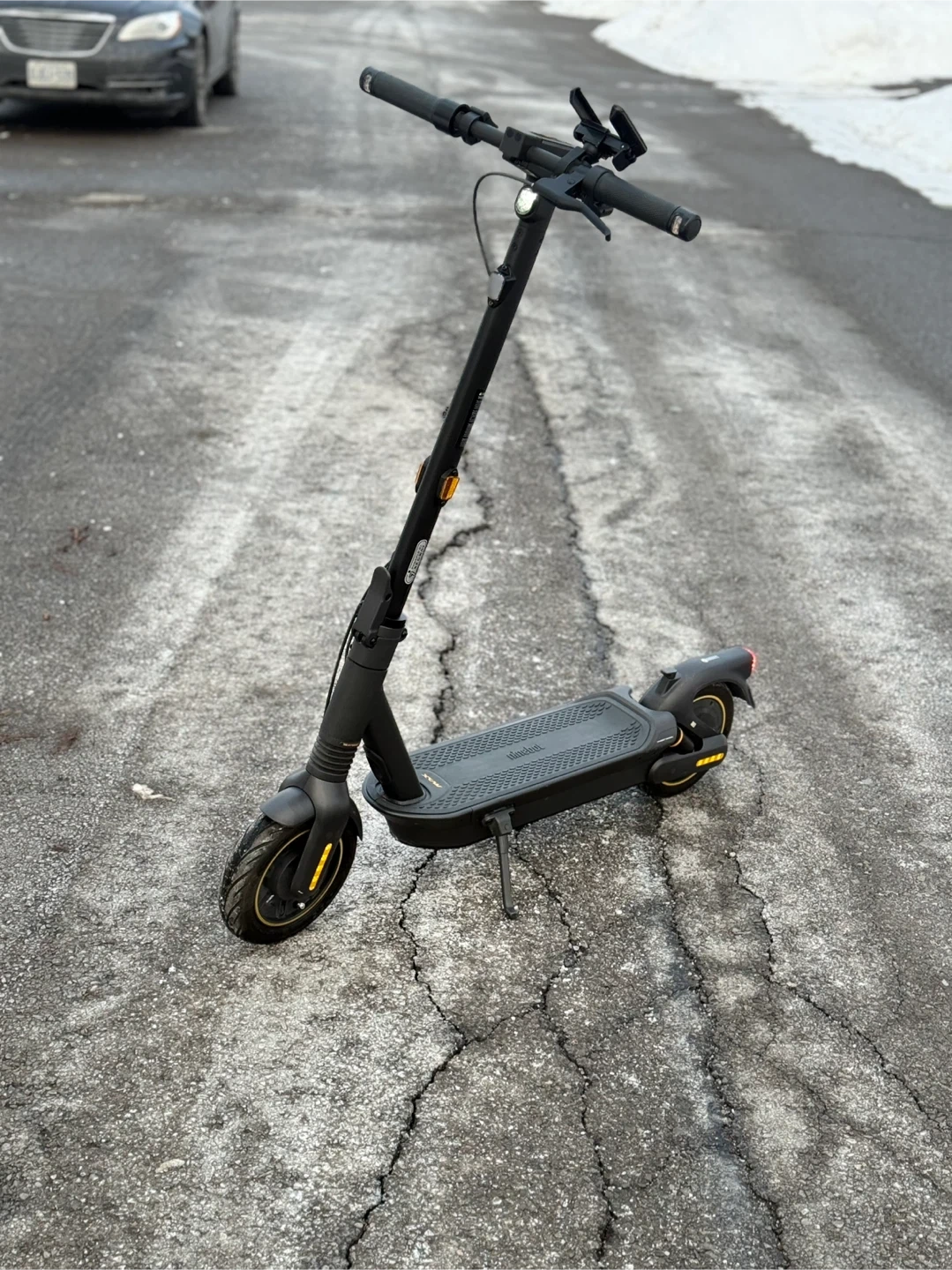 350 kms like new only ridden in summer last year. Turn signals and horn, phone holder brake light, headlight. Max 35 kmh and range 70kmh. Has connectable app has only 5 full charger cycles.