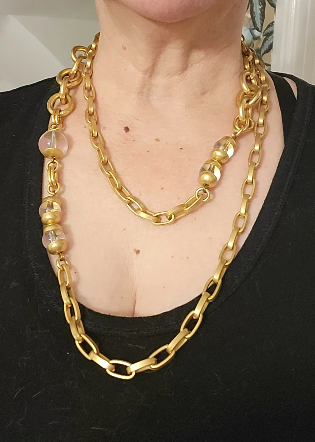 Gold Tone Chain Necklace with Beaded Accents