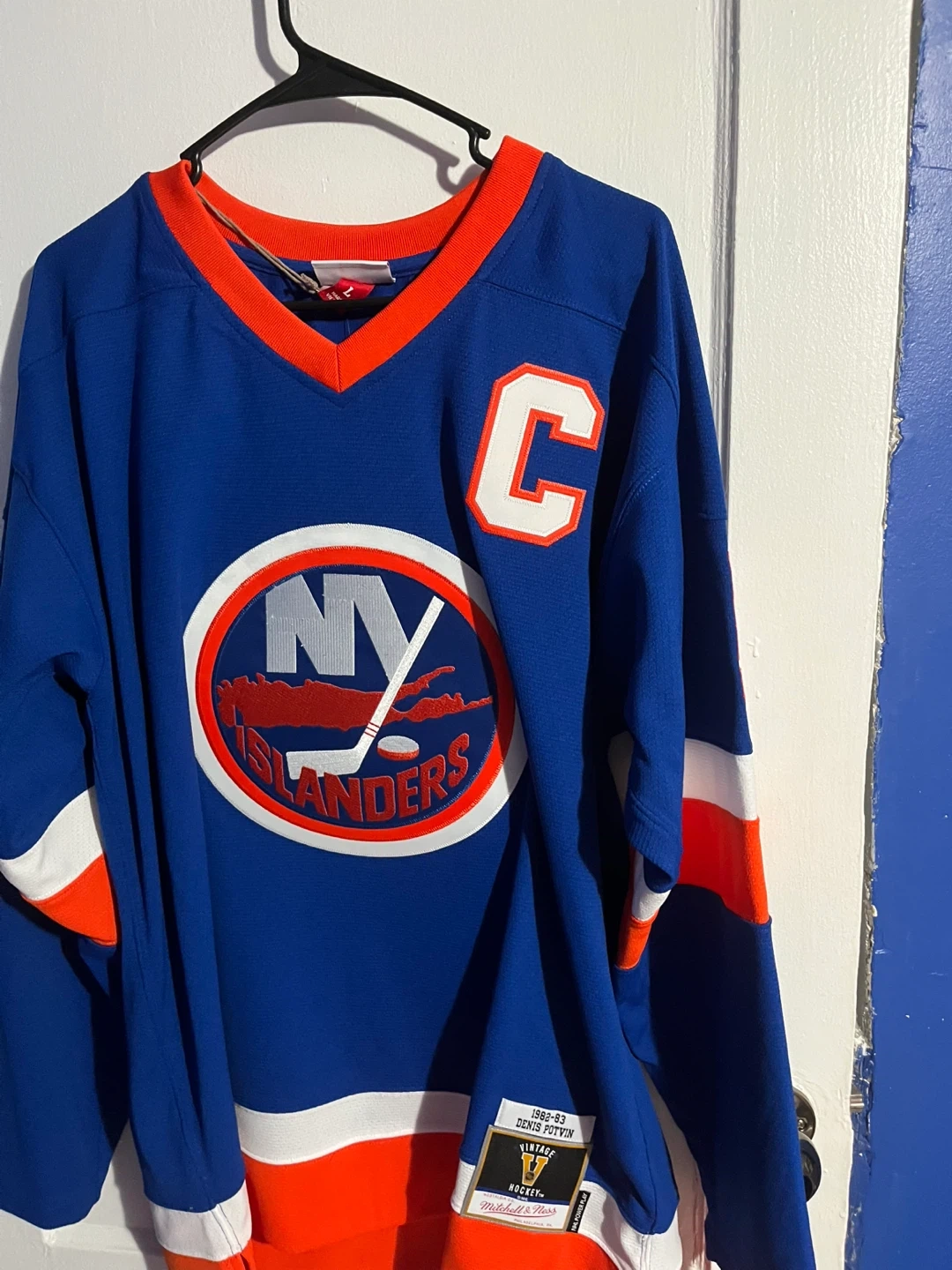 Selling a New York Islanders Denis Potvin jersey by Mitchell & Ness. It's a size L and features the classic Islanders colors and logo. Originally priced at $225