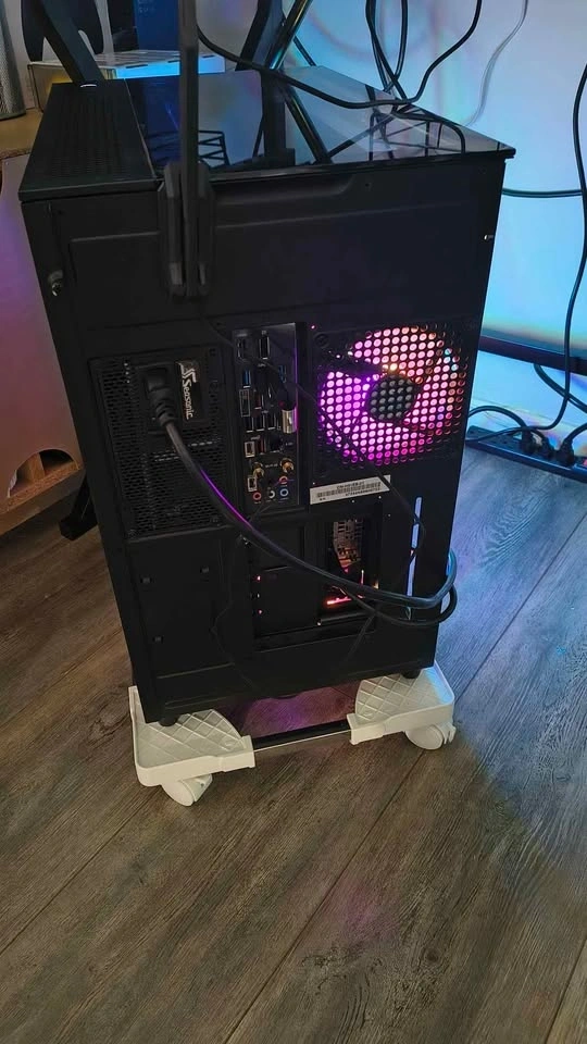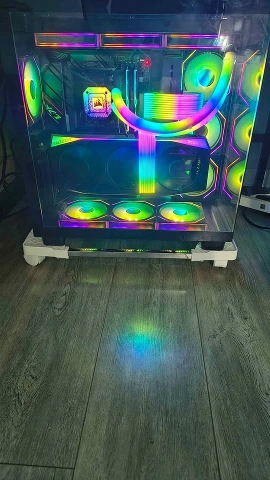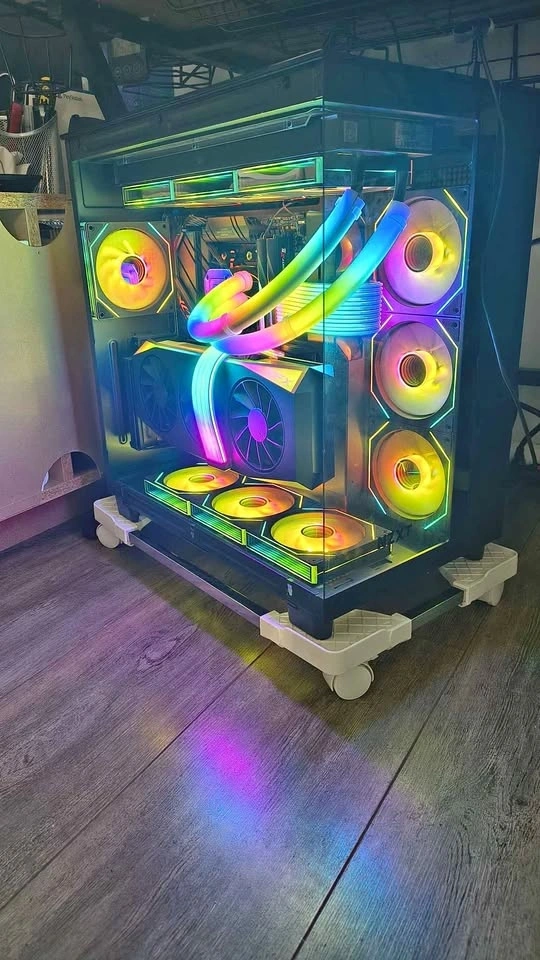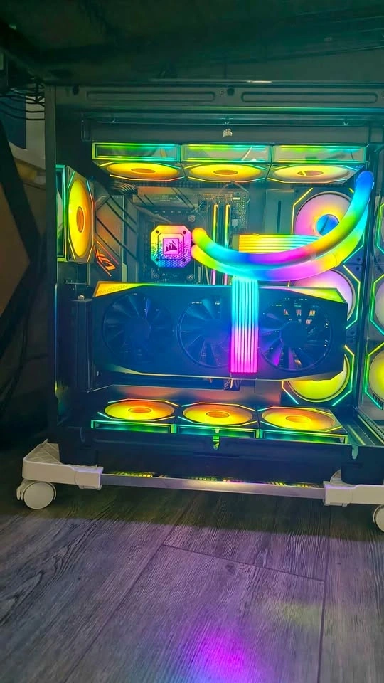 Extras: Additional Vertical GPU Mount Kit installed, 10 additional fans for a unified look, Strimer RGB cables, and RGB hubs. It looks absolutely stunning in person.