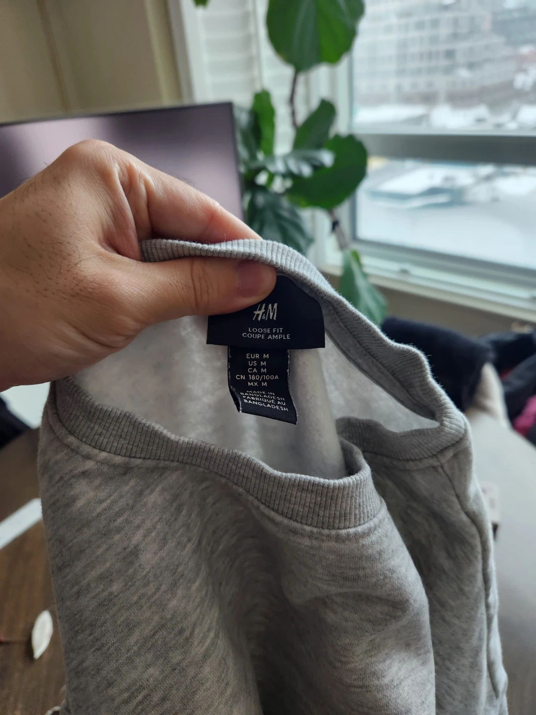 Grey H&M crew neck loose-fit sweatshirt in size Medium. It's made of a soft cotton blend for comfort. This pullover is a classic layering piece.