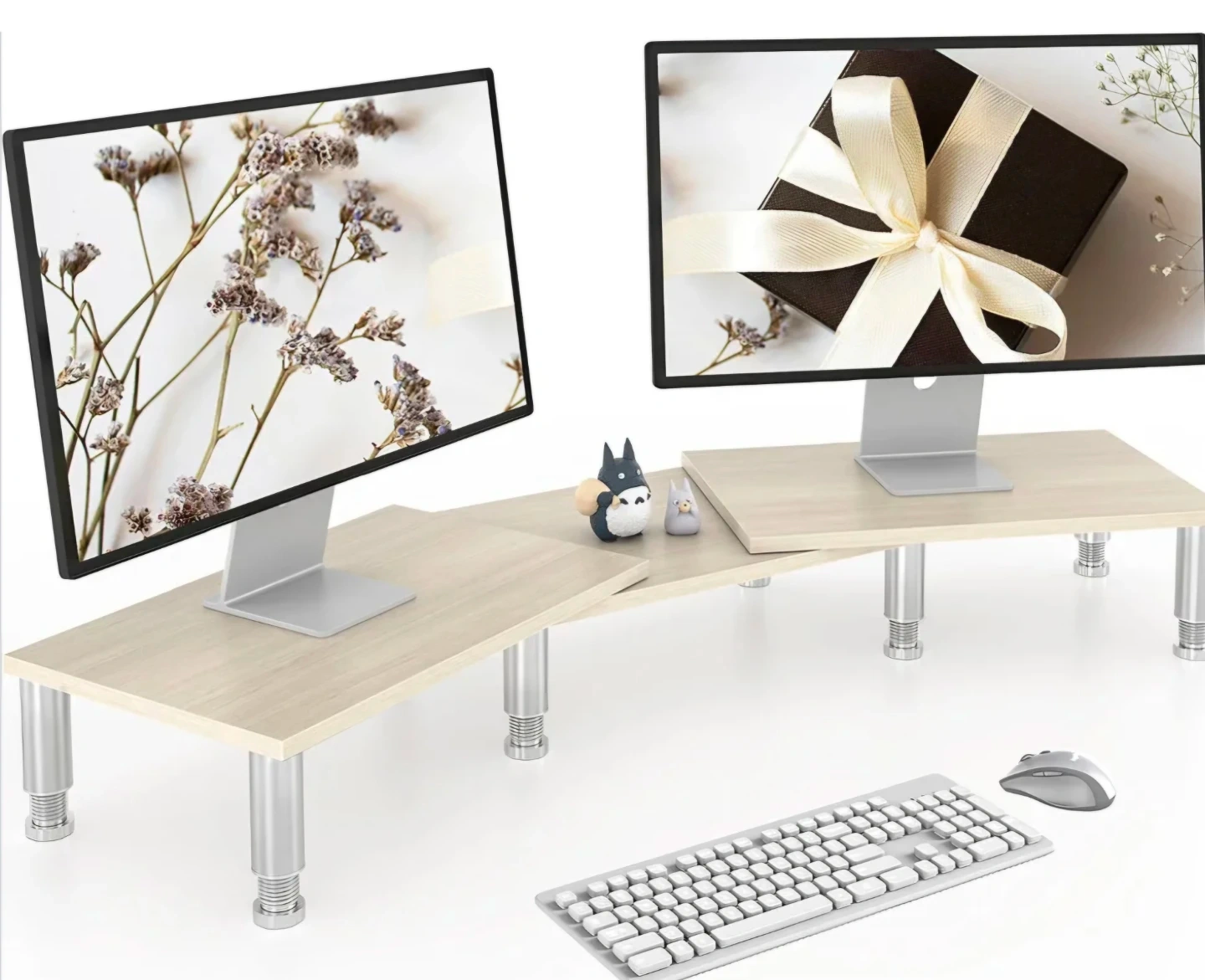 Dual Monitor Stand Risers with Adjustable Height Legs