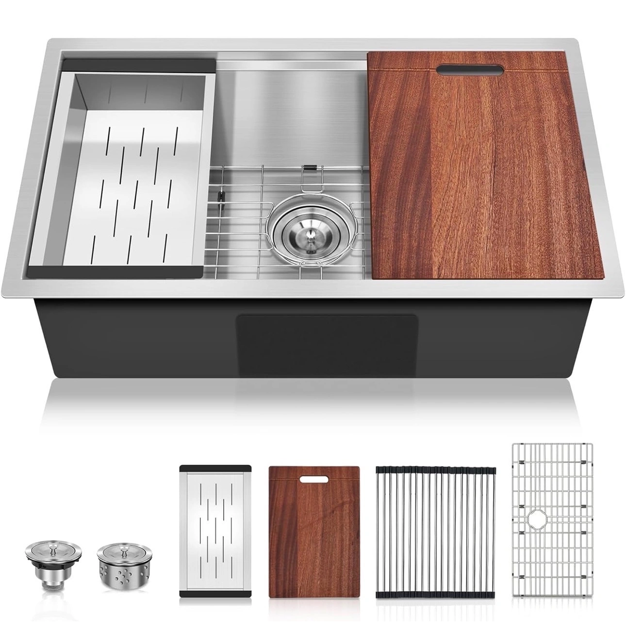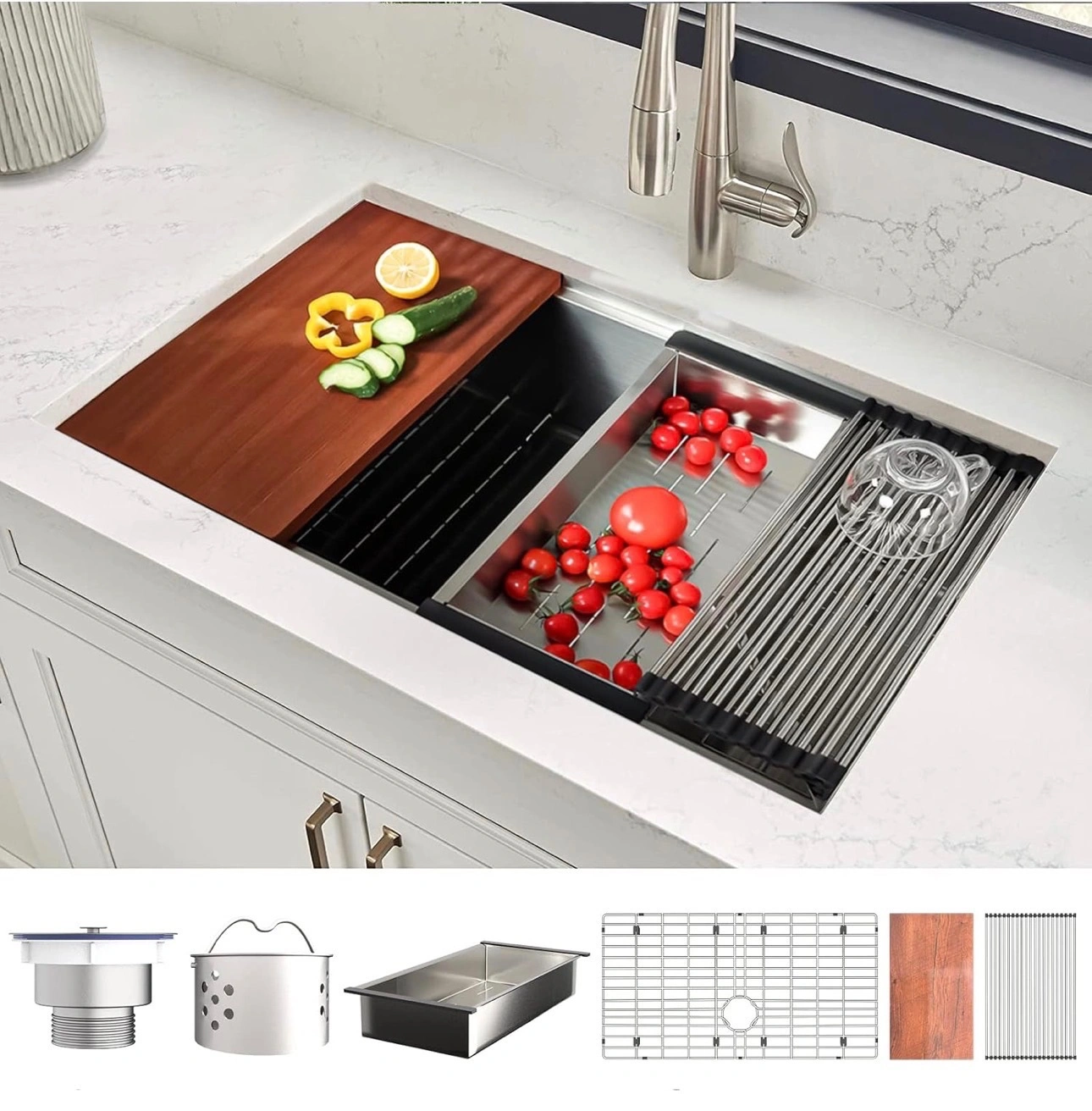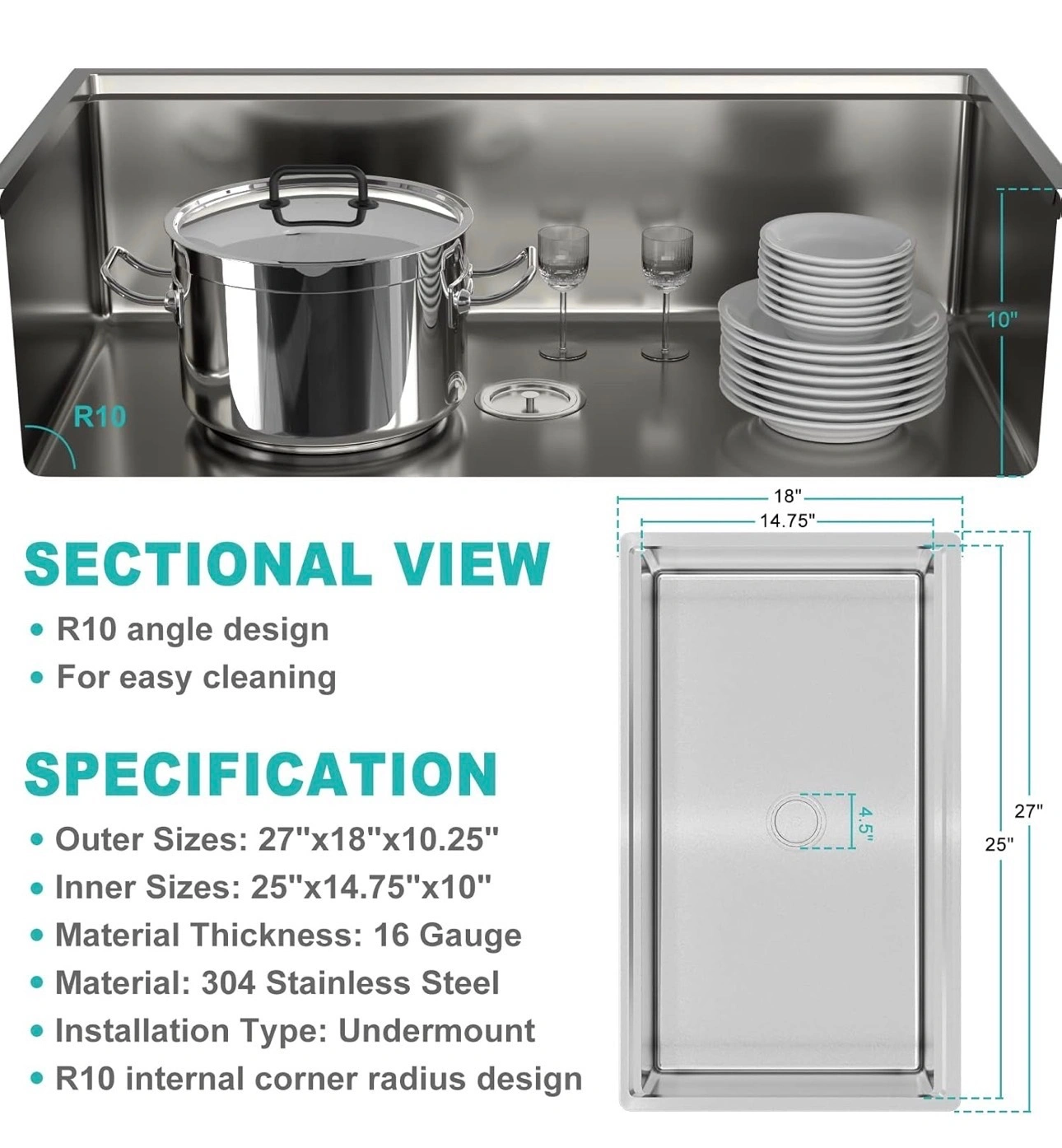 27 Inch by 18 Inch Undermount Kitchen Sink - 16 Gauge Drop In Kitchen Sink - Stainless Steel Single Bowl Kitchen Sink - Workstation Sink with Accessories