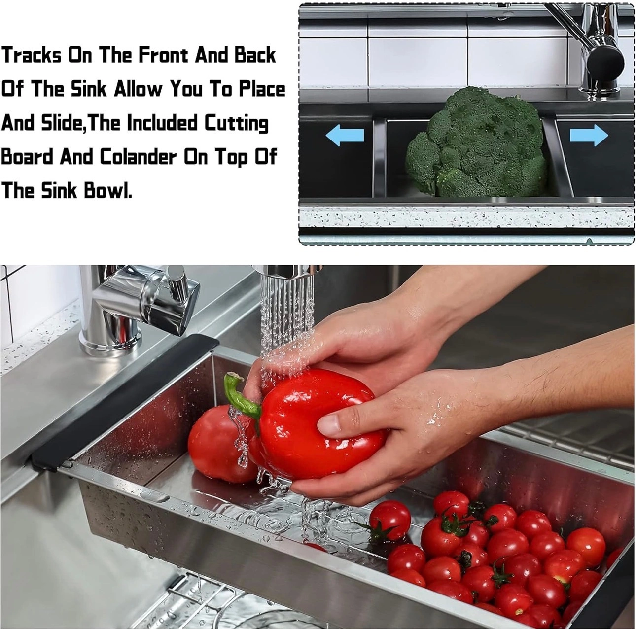 33x22x9 Black Double Bowl 50/50 ratio Stainless full acc