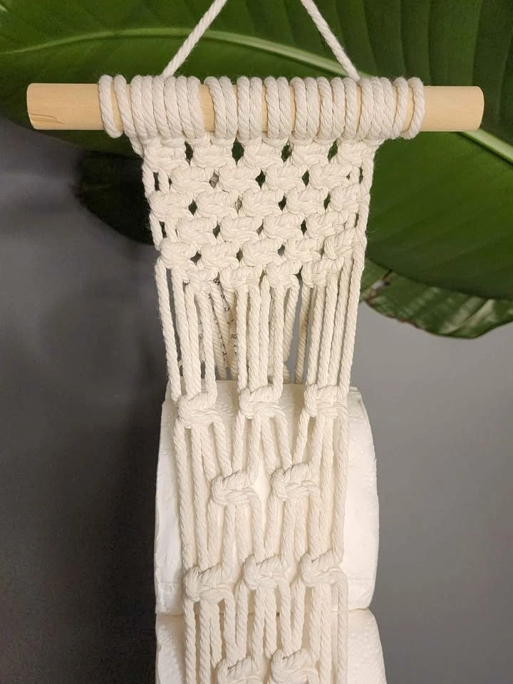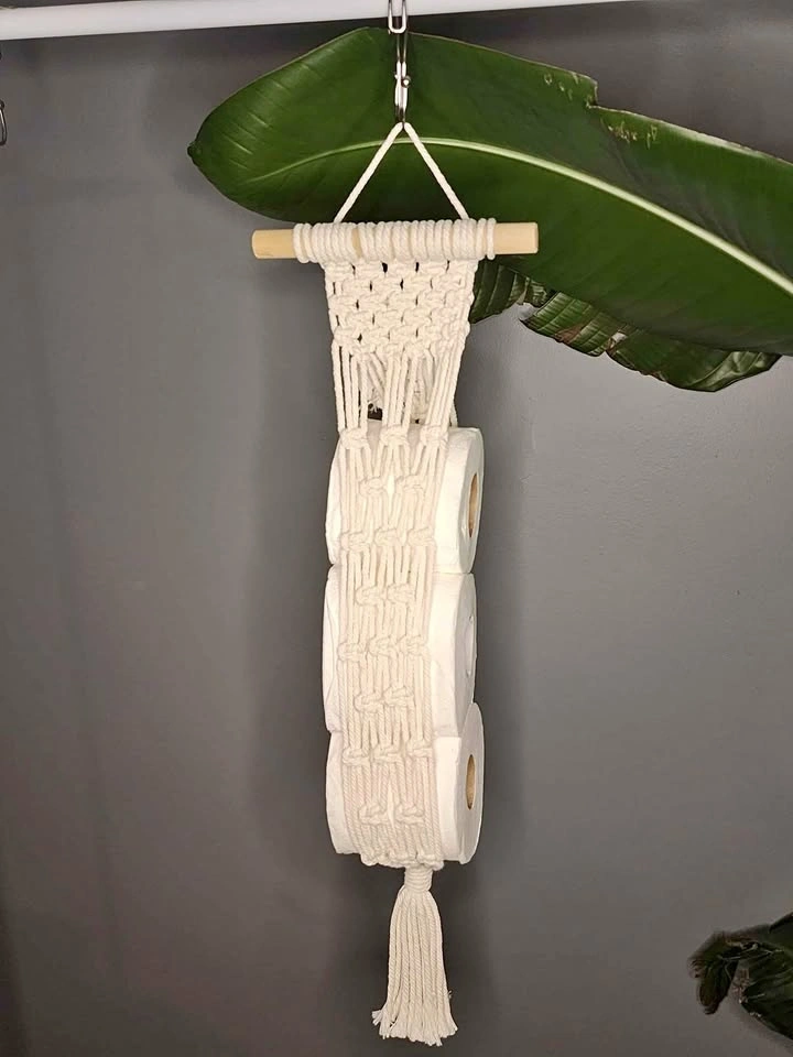 Handmade by me. Holds 3 rolls of toilet paper. Other macrame items are also for sale on other listings. I make everything myself but no longer have space to store my items.