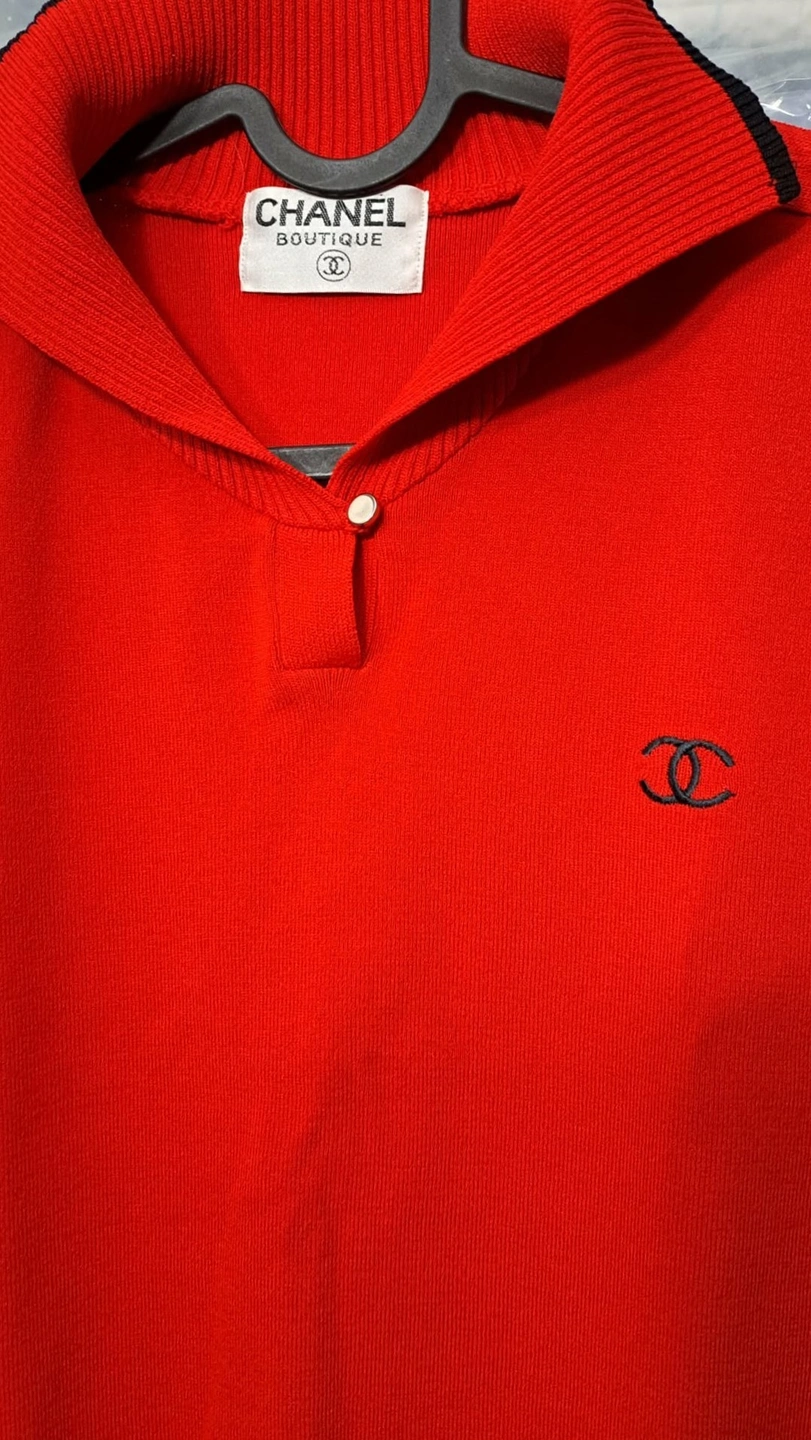 Iconic Branding: Embroidered Interlocking CC logo on the chest.