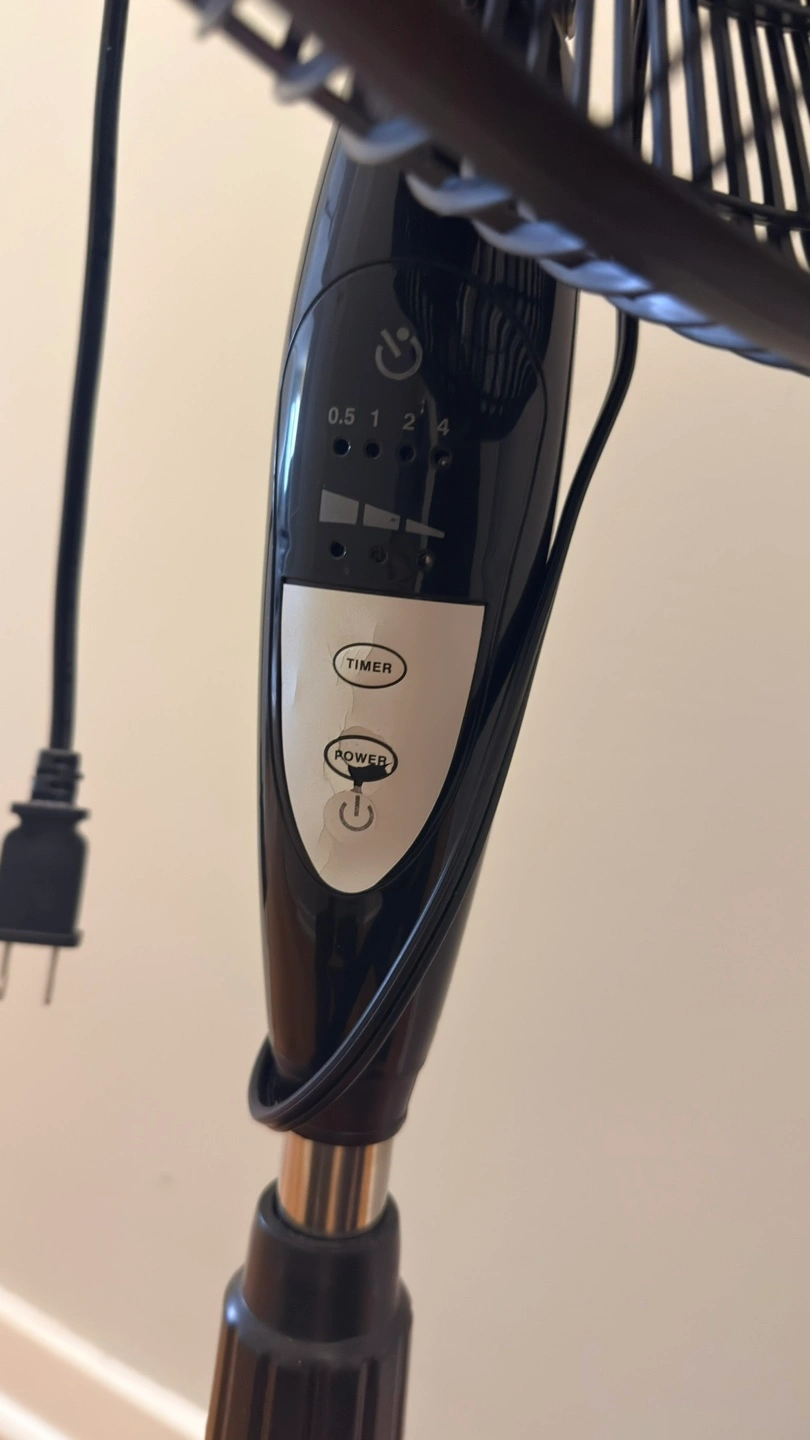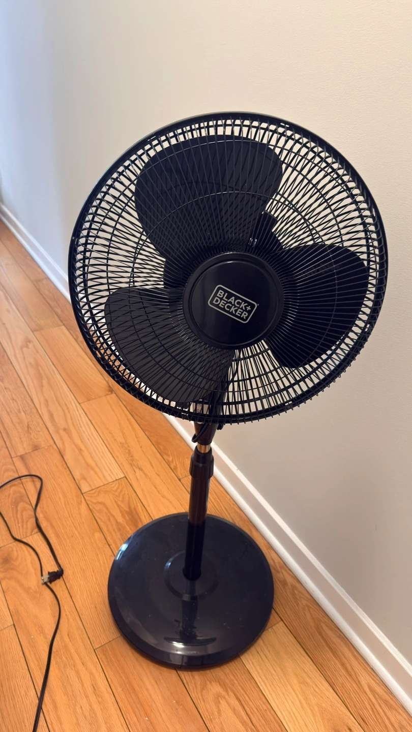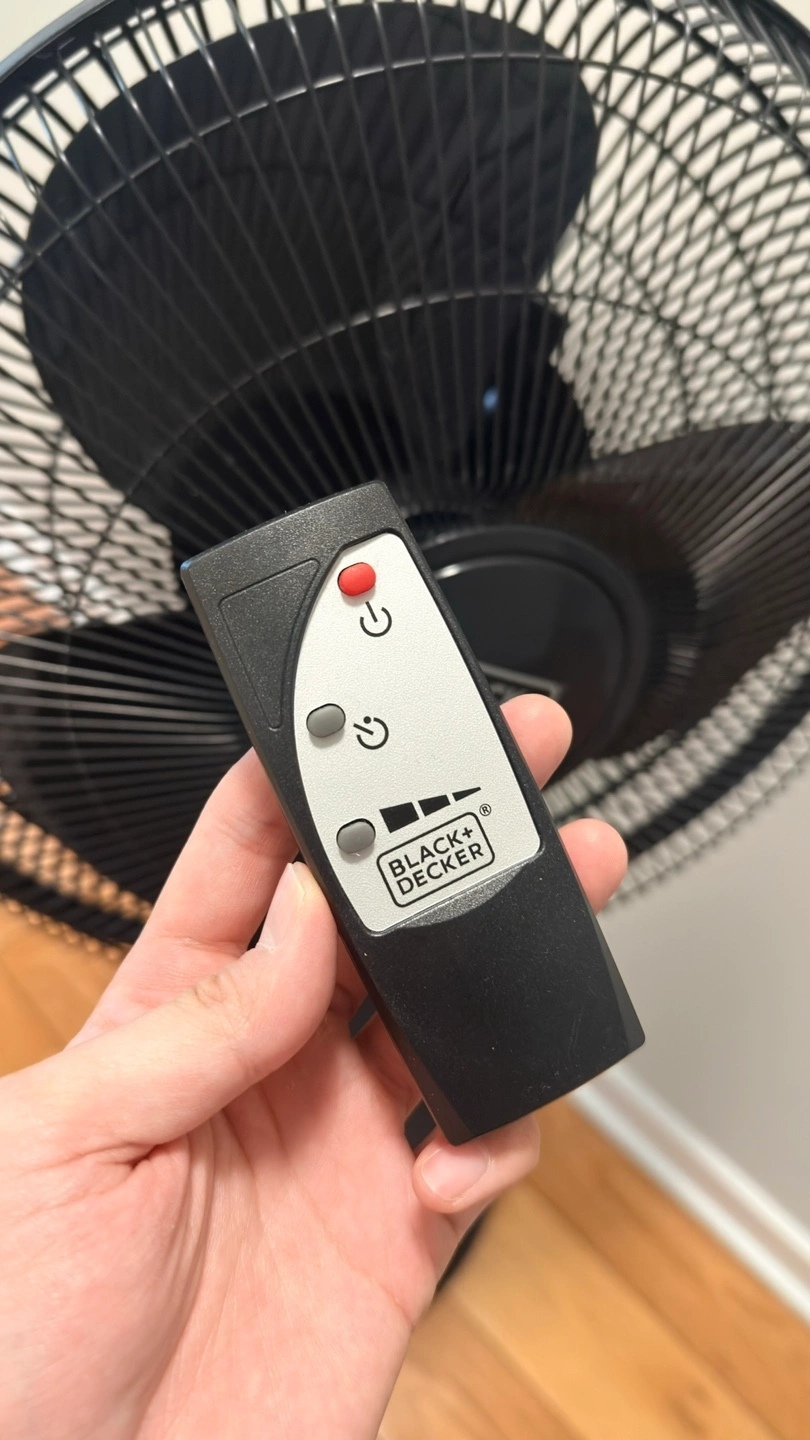 This is a BLACK+DECKER pedestal fan. It includes a remote control for convenience. The fan has multiple speed settings and a timer function. Great for keeping any room cool!