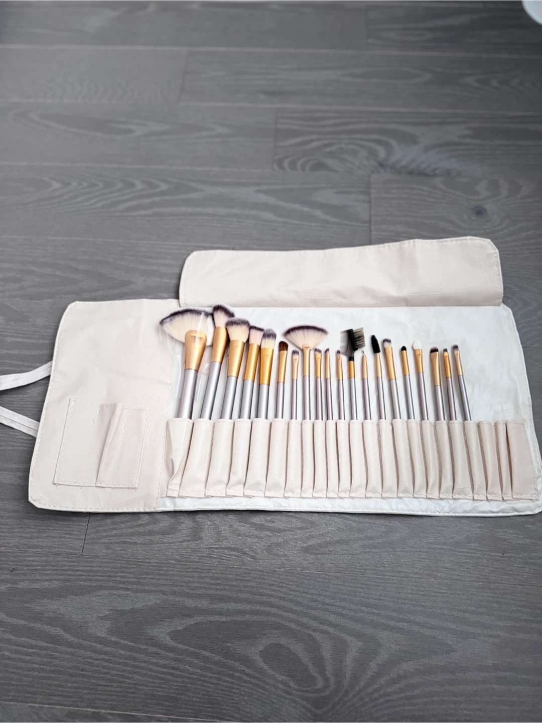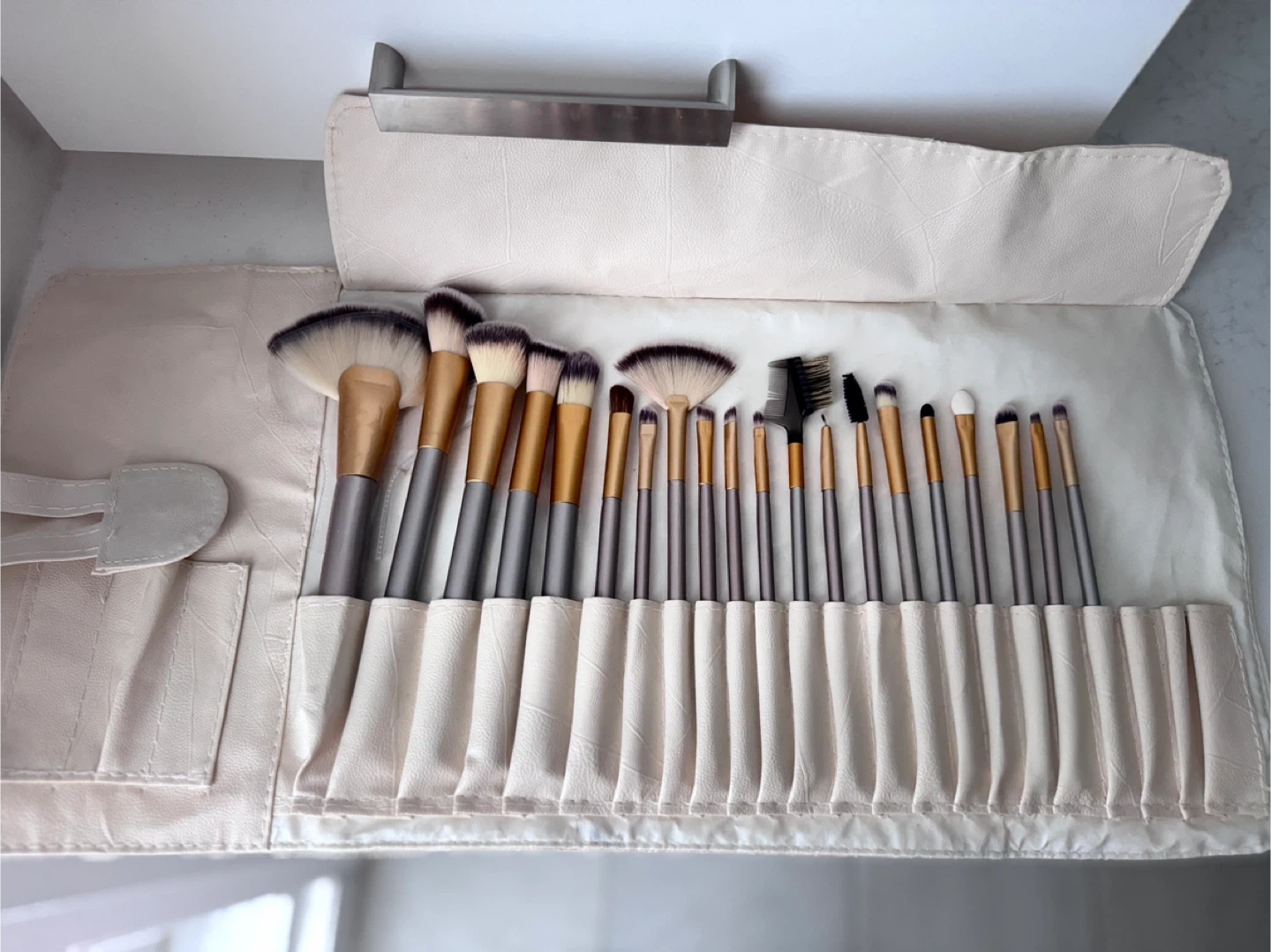 Selling a complete makeup brush set that comes with a convenient carrying case! This set includes a variety of brushes for all your makeup needs. The brushes are in excellent condition and ready for a new home. Perfect for beginners or makeup enthusiasts!