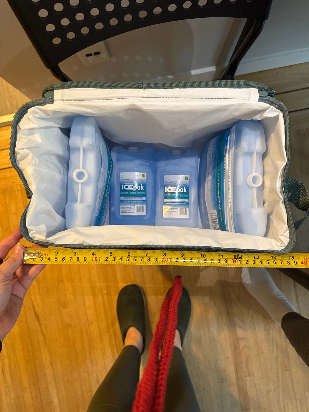 Includes: Cooler bag, two big ICE paks and two small ICE paks.