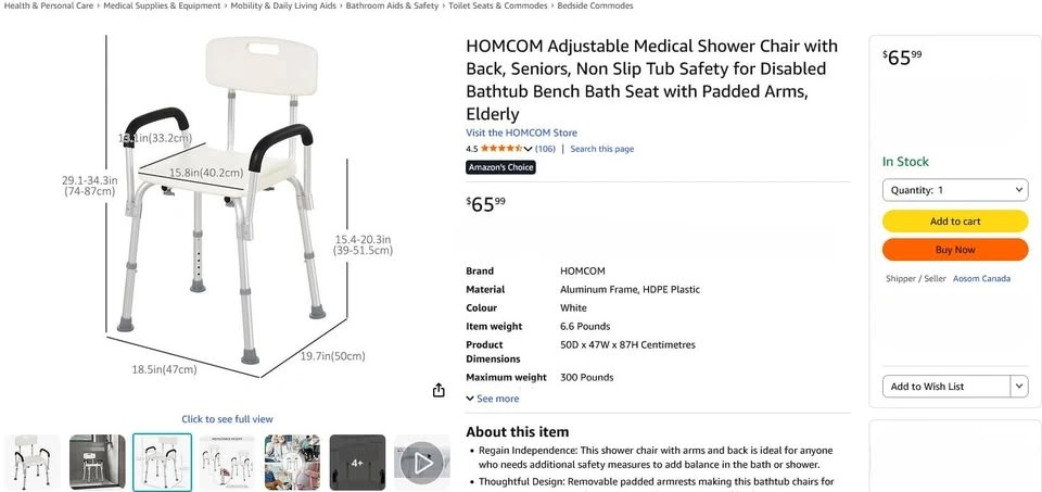 Tags: HOMCOM Adjustable Medical Shower Chair with Back, Seniors, Non Slip Tub Safety for Disabled Bathtub Bench Bath Seat with Padded Arms, Elderly π₯