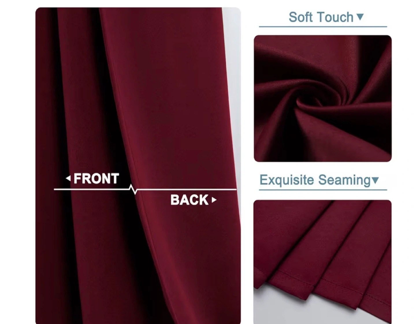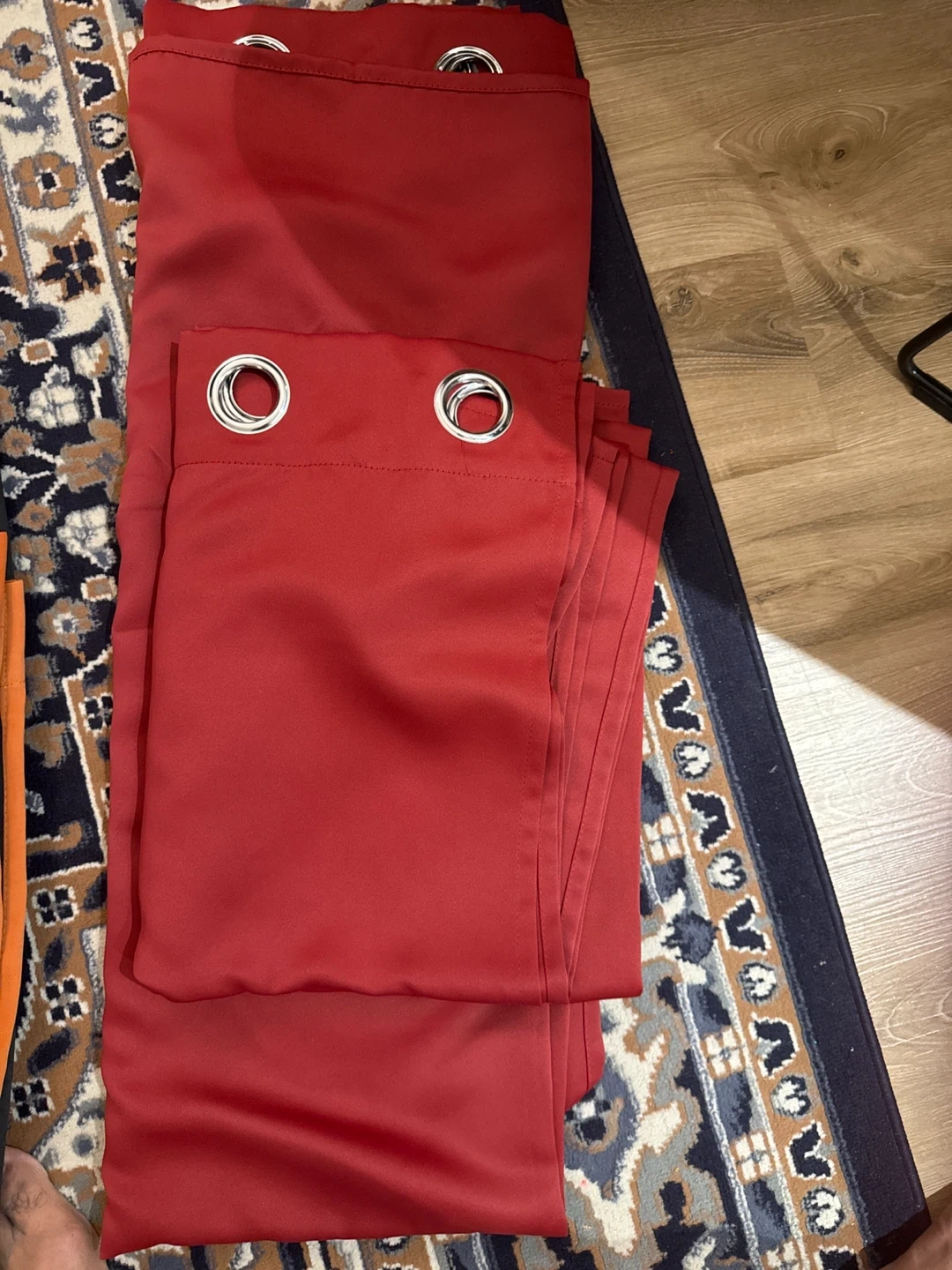 This is a set of two red curtains with grommets for hanging. They offer a soft touch and exquisite seaming. These curtains are suitable for any room needing light control.