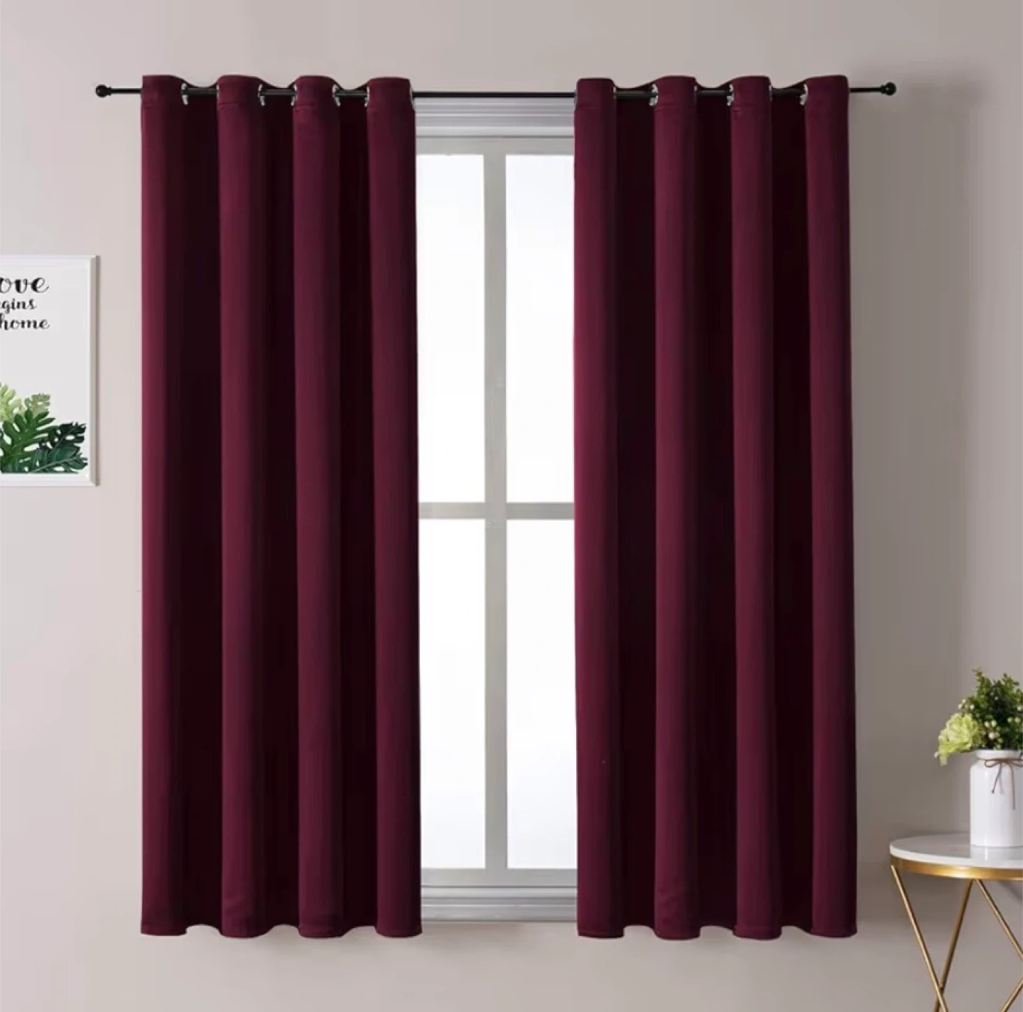 Burgundy Red Grommet Curtains - Set of 2