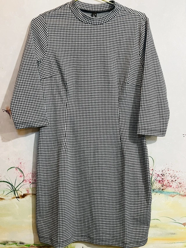 Check out this Mock Neck Mini Dress, perfect for adding a touch of vintage chic to your wardrobe! It's a size M, featuring a classic houndstooth pattern and a flattering mini length. Specifications: * Size: M * Design: Houndstooth * Neckline: Mock Neck * Sleeve Length: 3/4 Sleeve * Dress Length: Mini If you're seeing this ad, the dress is still available – ready to make a statement at your next event! Available for a pick up in Brampton near Sheridan College at Blue Bonnet Drive.