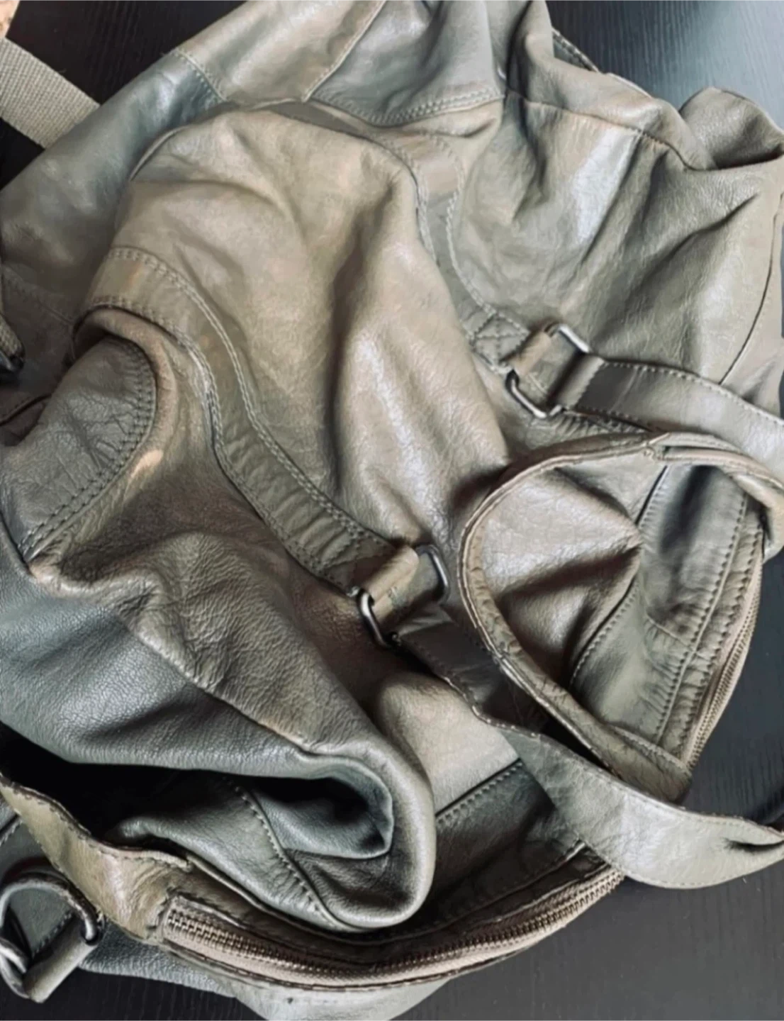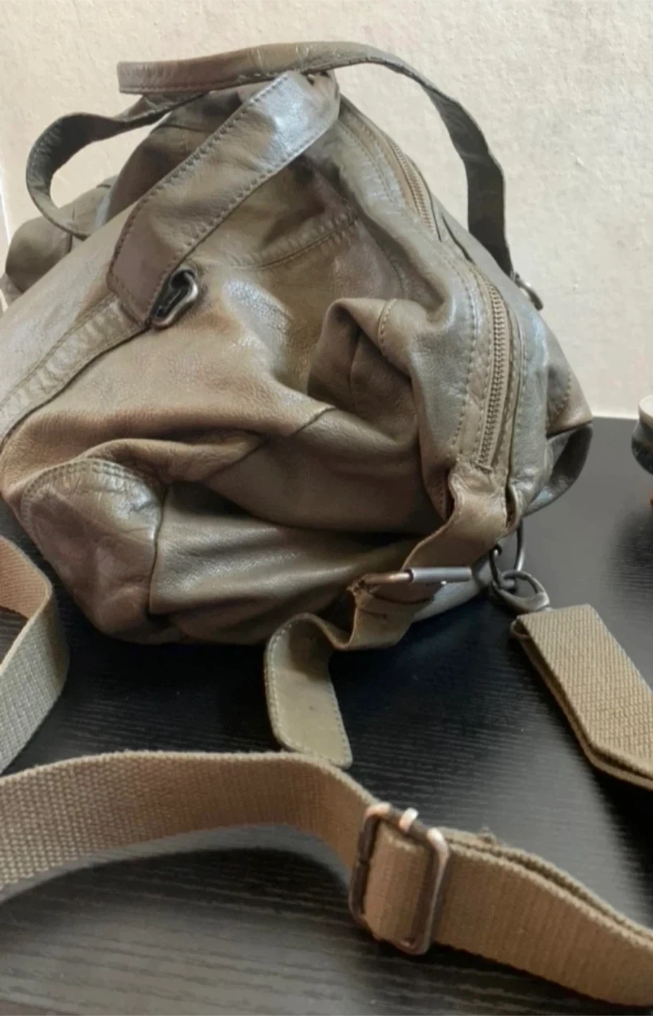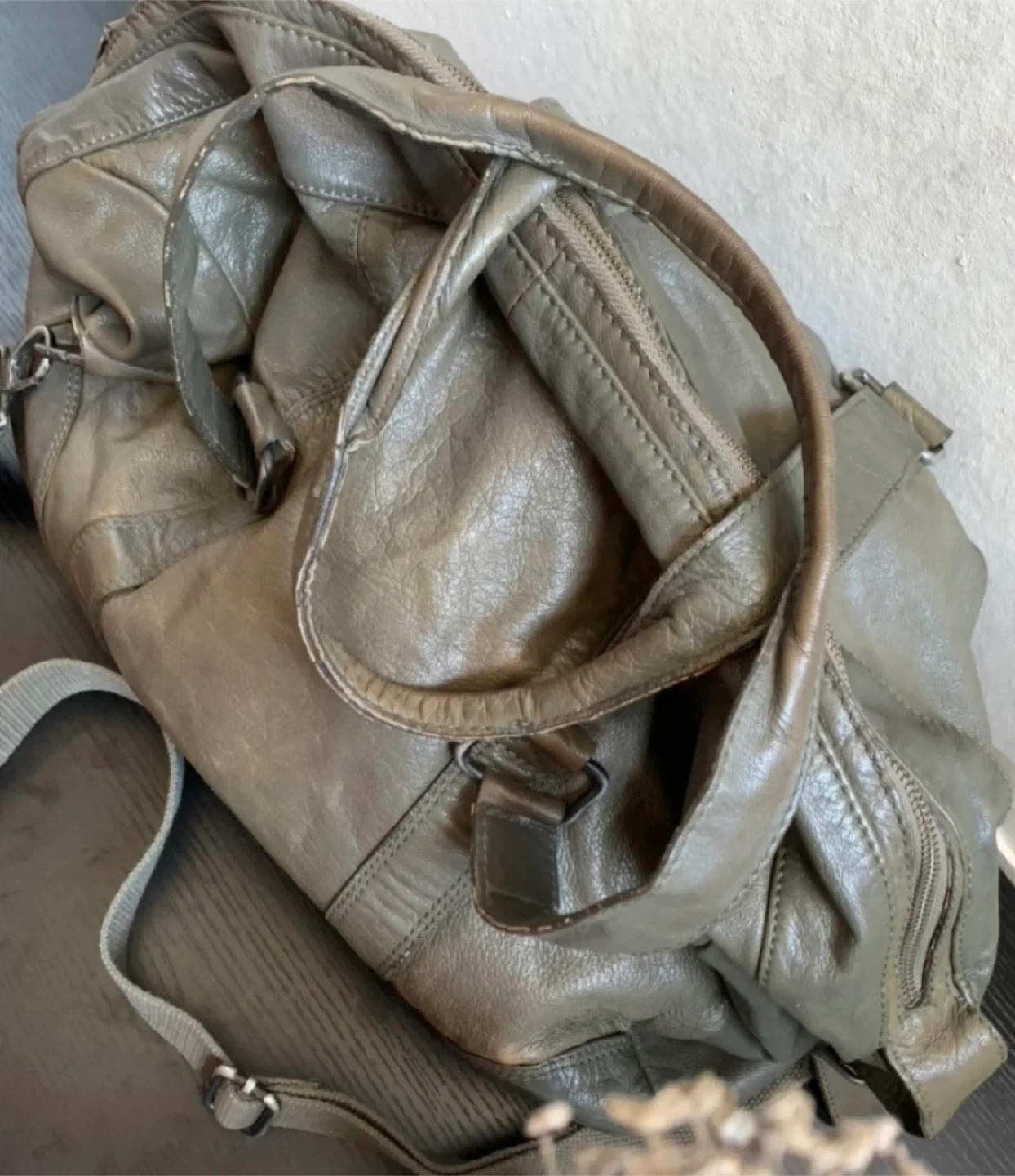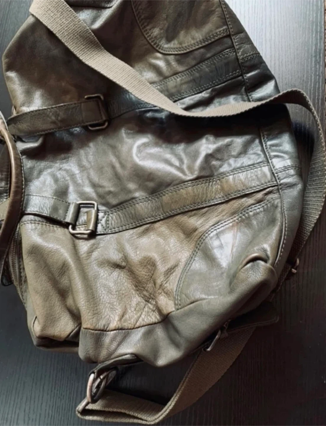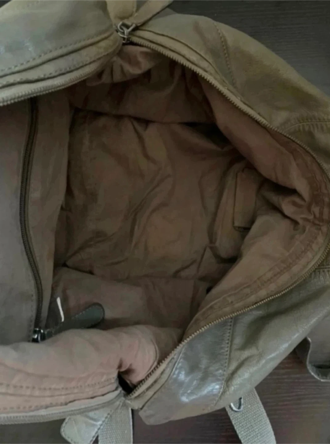 Duffle Bag-Vintage Leather Duffle Bag-Grey Green