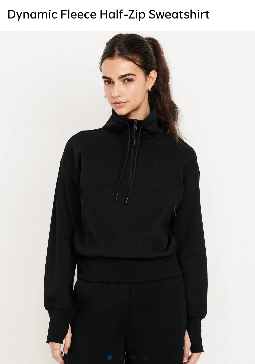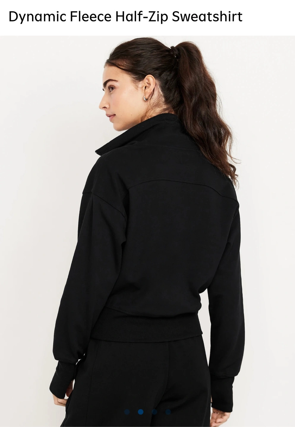 Dynamic Fleece Sweatshirt and Pants Set The set consists of a half-zip sweatshirt and matching pants. Both items are made of fleece, offering a cozy feel. A comfortable outfit for lounging at home or a casual outing both black and only worn once.