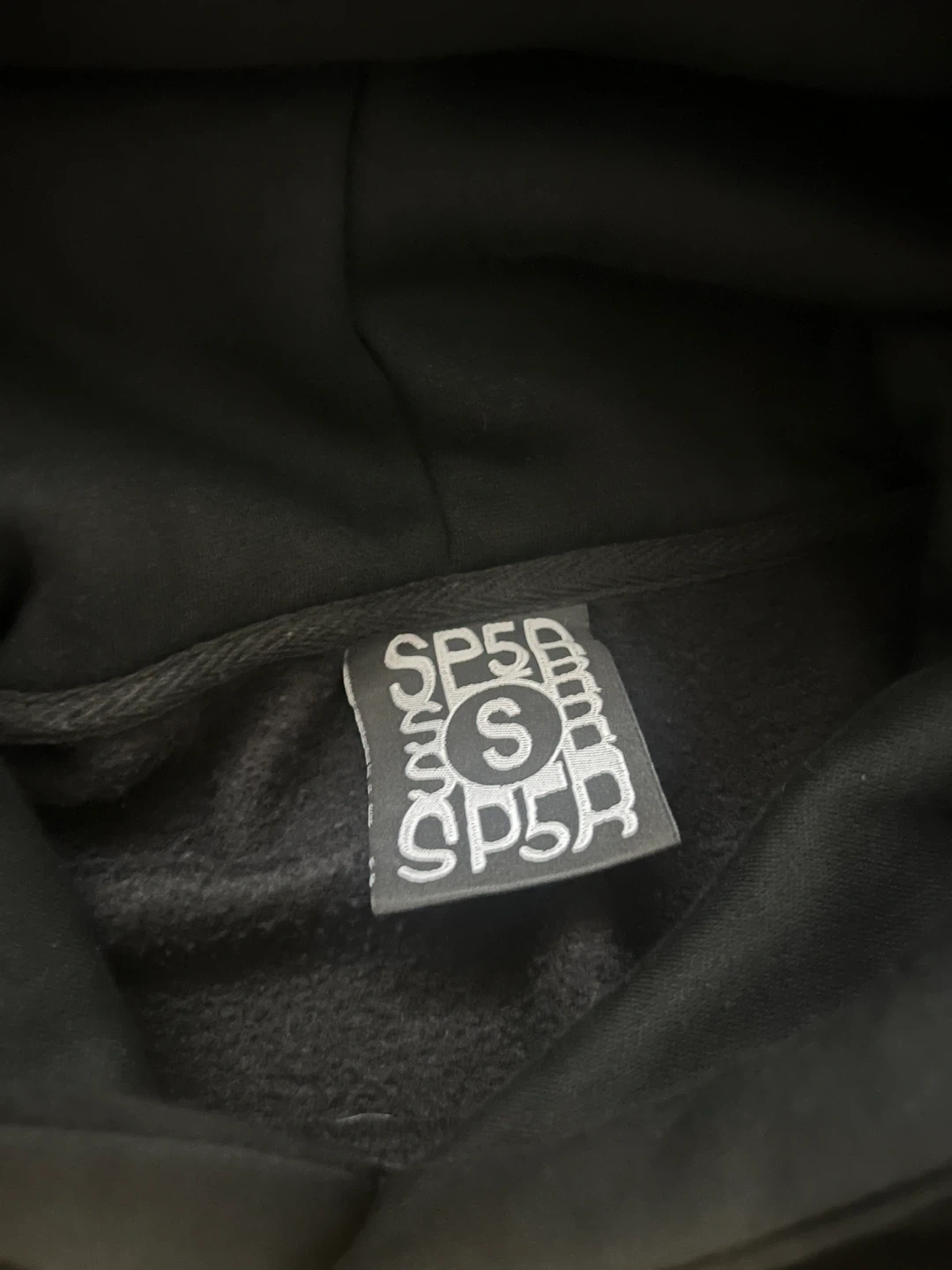 Black SP5DER hoodie featuring a star graphic design. It's a size small. Made with a comfortable fabric blend.