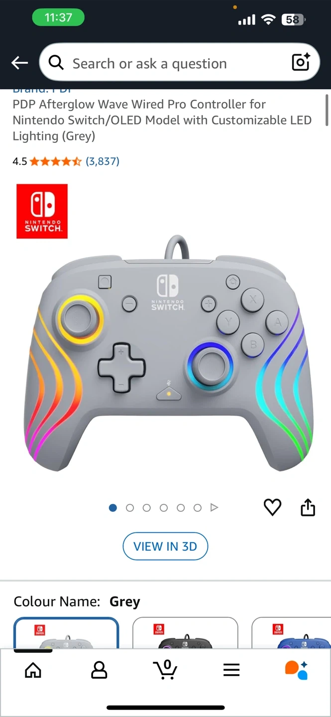Selling a PDP Afterglow Wave Wired Pro Controller for Nintendo Switch. It features customizable LED lighting and comes in grey. Perfect for gaming!