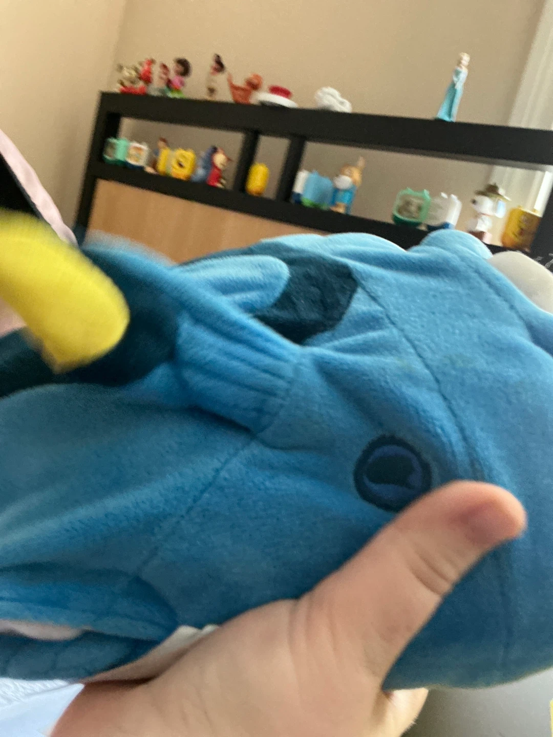 Plush Dory from Disney Pixar’s finding Dory, says seven different phrases and moves her fins and mouth in sync with what she’s saying, she even speaks her signature whale voice, WHYYYYYYYTHANKKKKYOUUUU. Made by the Disney store.