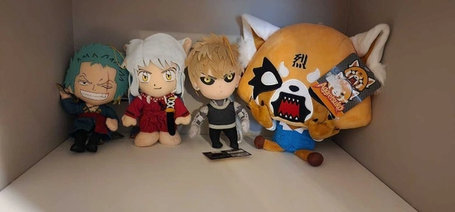 Up for grabs are 4 anime plushies, featuring Zoro from One Piece, Inuyasha from Inuyasha, Genos from One Punch Man, and Retsuko from Aggretsuko. They are priced at $15 each. Feel free to message me if you're interested in purchasing multiple plushies or would like to see more pictures.