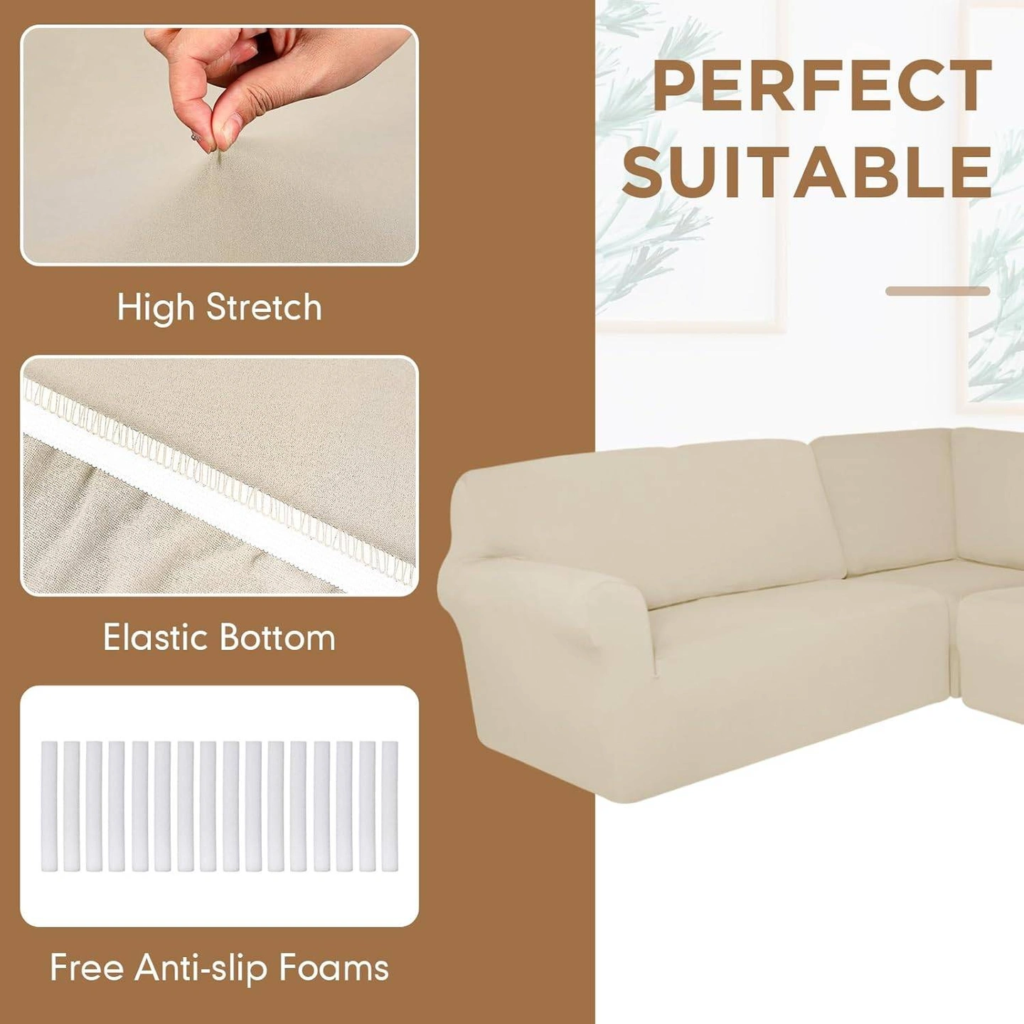 It's a 3-piece set and features high-stretch fabric, an elastic bottom, and free anti-slip foams to keep it securely in place. Breling 3 Pcs L Shaped Couch Covers for Sectional Corner Sofa Stretch 5 Seat Washable Corner Sofa Slipcover Sectional Couch Protector for Living Room(Beige)
