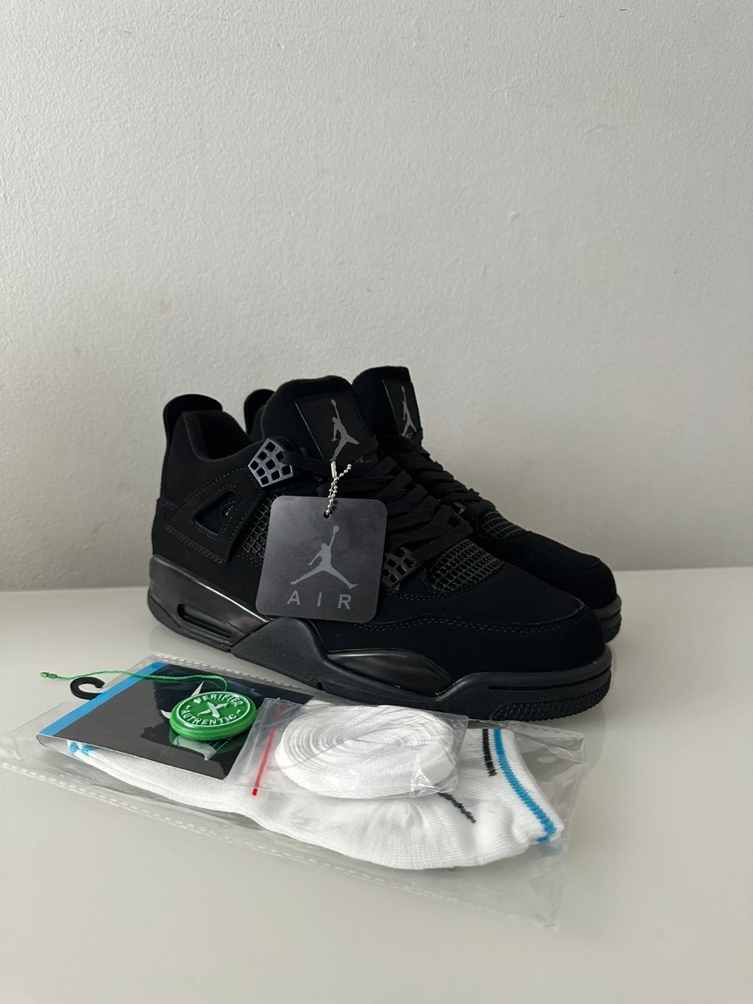 Up for grabs are a pair of Air Jordan 4 "Black Cat" sneakers. They come in a sleek, all-black colourway-perfect for sneakerheads or anyone looking for a stylish everyday shoe.