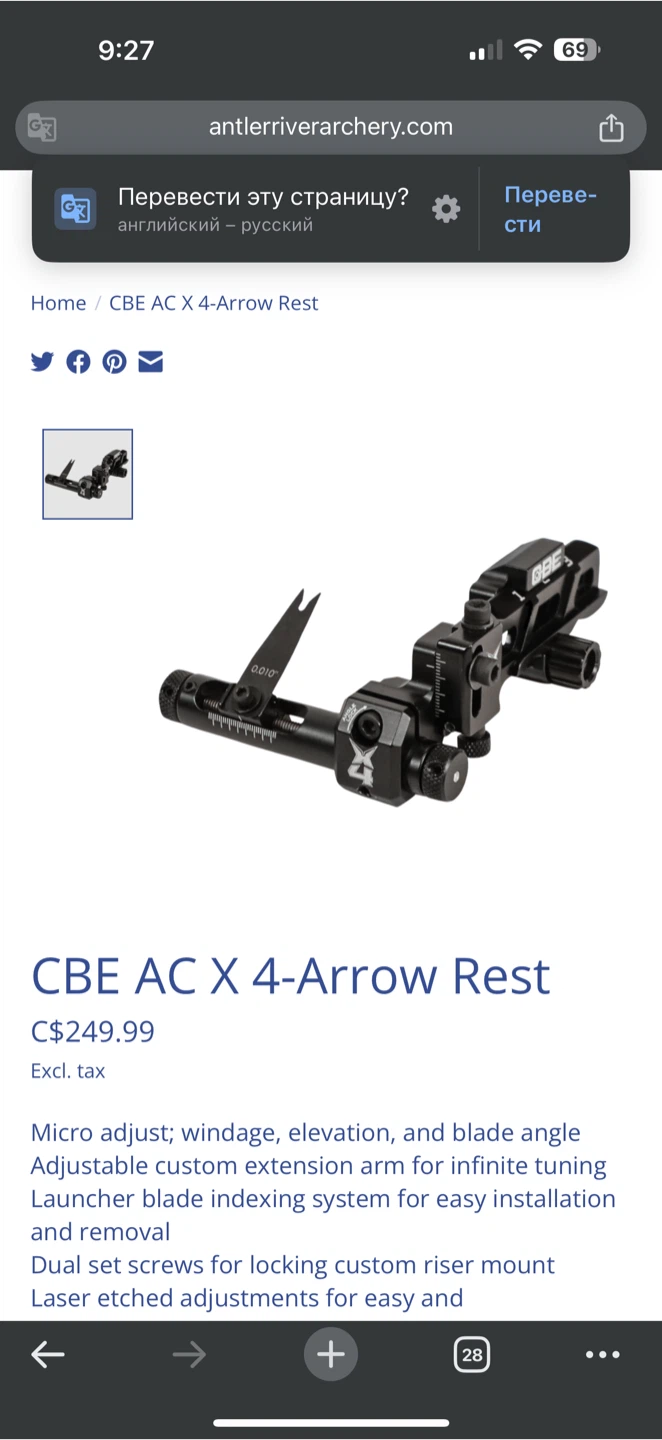 CX4 Arrow Rest Archery Sight
