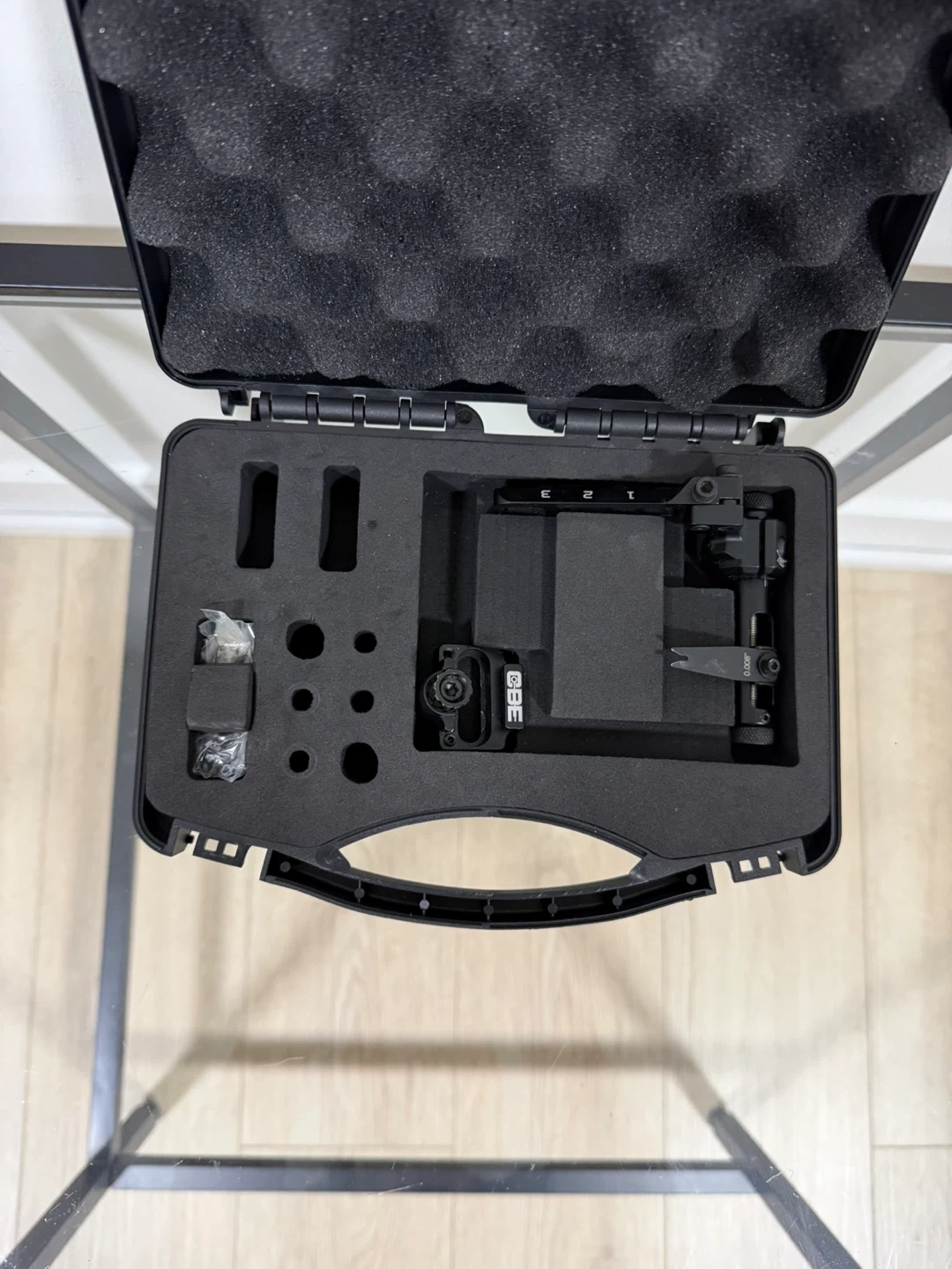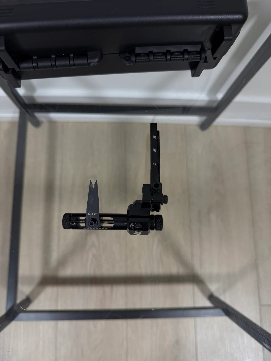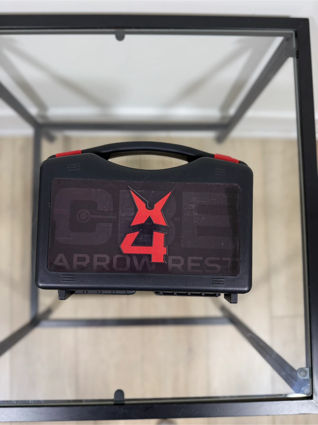 CX4 arrow rest with case. Features adjustable settings for precise aiming. Includes all original components in a protective carrying case.